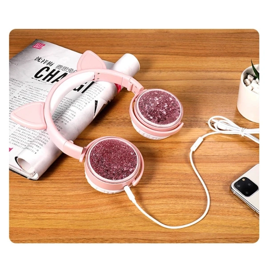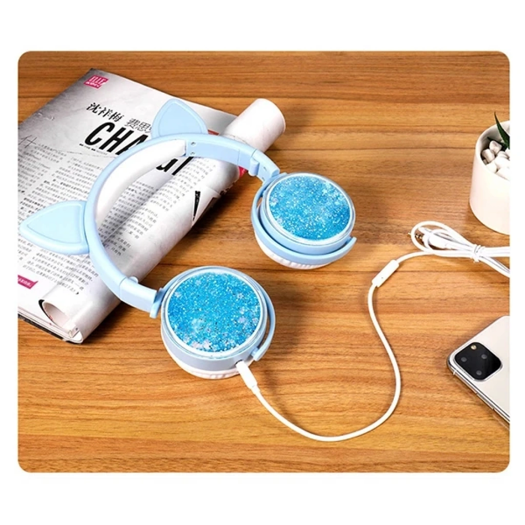ALLY Kedi Kulak Simli Kablolu Mikrofonlu Kulaküstü Kulaklık 3.5mm jack