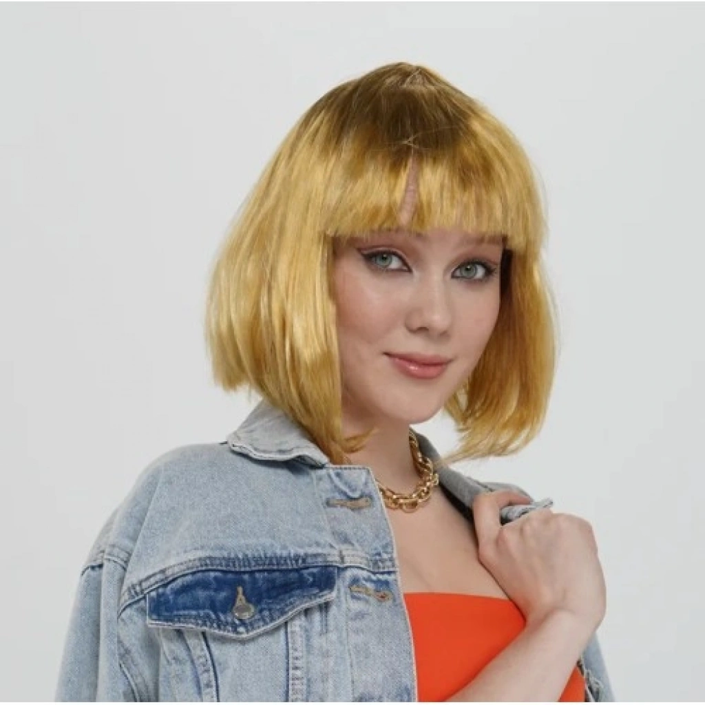Altın Renk Düz Kesim Küt Parti Peruğu Kısa Takma SaçCesur, modern ve dikkat çekici bir stil arayanlar için tasarlanan altın renk düz kesim küt parti peruğu, kısa modeliyle hem şık hem de kullanımı pratik bir kostüm aksesuarıdır. Altın rengi küt peruk, canlı tonu sayesinde sahnede, partilerde ve fotoğraf çekimlerinde güçlü bir görsel etki oluşturur.Düz kesim ve kısa küt saç formu, modern bir görünüm sunarken yüz hatlarını ön plana çıkarır. Sentetik saç malzemeden üretilmiş olan bu kısa parti peruğu, hafif yapısı sayesinde başta ağırlık yapmaz ve rahat kullanım sağlar. Peruğu takmak son derece kolaydır; kafanıza yerleştirmeniz yeterlidir.Kostüm partileri, okul gösterileri, tiyatro sahneleri, cosplay etkinlikleri, anime karakterleri, peri ve fantastik konseptler için ideal bir tercihtir. Parti ve sahne kullanımı için tasarlanmış olup, farklı kostüm kombinleriyle rahatlıkla uyum sağlar. Eğlenceli, iddialı ve göz alıcı bir görünüm elde etmek isteyenler için mükemmel bir seçenektir.Öne Çıkan Özellikler: Renk: Altın Model: Düz kesim, kısa küt Malzeme: Sentetik saç Kullanım: Kolay takılır, hafif ve konforlu Kullanım Alanları: Parti, kostüm, cosplay, sahne ve fotoğraf çekimleri