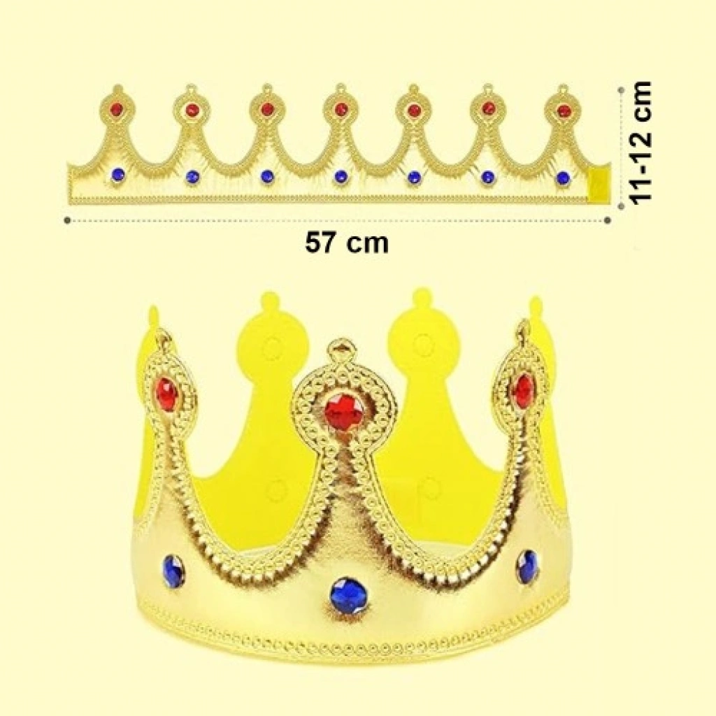Altın Renk Eva Malzemeden İmal Çocuk Kral Tacı 57 cmParti ve kutlamalara masalsı bir hava katmak isteyenler için tasarlanan altın renk çocuk kral tacı, şık ve dikkat çekici görünümüyle eğlenceli konseptlerin vazgeçilmez aksesuarıdır. Altın (sarı) rengi sayesinde kral ve prenses temalı kostümlerde güçlü bir görsel etki oluşturur.Yumuşak ve esnek eva kumaş malzemeden üretilmiş olan bu kral tacı, hafif yapısı sayesinde rahat bir kullanım sunar. 57 cm çapındaki ölçüsü ile hem çocuklara hem de yetişkinlere uyumlu olacak şekilde tasarlanmıştır. Esnek yapısı başı sıkmaz ve uzun süreli kullanımlarda konfor sağlar.Doğum günü partileri, temalı kutlamalar, okul gösterileri, tiyatro sahneleri ve kostüm etkinlikleri için ideal olan bu altın renk parti tacı, hem bireysel kullanım hem de hediye alternatifi olarak tercih edilebilir. Eğlencenizi tamamlayan şık ve kullanışlı bir parti aksesuarıdır.