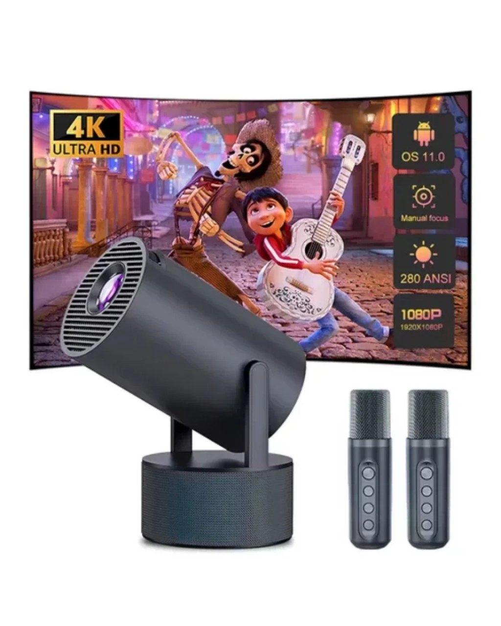 Siyah renkli fişli akıllı projeksiyon cihazı, ev eğlencesini yalnızca film izleme deneyimi olmaktan çıkararak tam kapsamlı bir karaoke ve multimedya sistemine dönüştürür. 3’ü 1 arada tasarımı sayesinde projeksiyon, güçlü Bluetooth hoparlör ve kablosuz karaoke mikrofon özelliklerini tek bir kompakt gövdede birleştirir. Özellikle arkadaş buluşmaları, aile toplantıları ve doğum günü organizasyonları için ideal bir eğlence çözümüdür.Karaoke özelliği bu cihazın en dikkat çekici avantajlarından biridir. Çift kablosuz mikrofon desteği sayesinde iki kişi aynı anda şarkı söyleyebilir. Bu özellik düet performanslar, yarışmalar veya eğlenceli sahne deneyimleri için büyük avantaj sağlar. Mikrofonlar net ses iletimi sunar ve güçlü dahili hoparlör sistemi ile uyumlu çalışarak yankısız, dengeli ve yüksek kaliteli ses performansı sağlar. 360° stereo ses dağılımı sayesinde ortamın her köşesinde net müzik ve vokal duyulabilir.1080P çözünürlükte projeksiyon özelliği, karaoke deneyimini görsel olarak da destekler. Şarkı sözleri duvara veya perdeye net ve canlı şekilde yansıtılır. 180° dönebilen projeksiyon başlığı sayesinde ister duvara ister tavana yansıtma yapılabilir. Bu esneklik, farklı mekanlarda kullanım kolaylığı sağlar.Fişli tasarım sayesinde kesintisiz enerji sunar. Uzun süreli karaoke gecelerinde batarya sorunu yaşamazsınız. WiFi ve Bluetooth desteği ile telefon, tablet veya internet üzerinden şarkı platformlarına kolayca bağlanabilirsiniz. HDMI ve USB girişleri sayesinde harici cihaz bağlantısı mümkündür.Şık siyah tasarımı modern ve premium bir görünüm sunarken güçlü performansı ile eğlenceyi profesyonel seviyeye taşır.