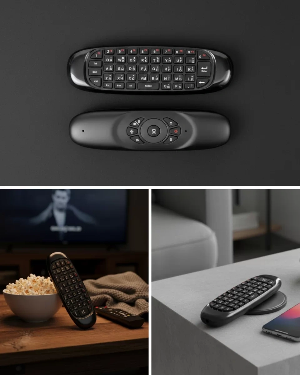 Kablosuz mini klavye ve hava fare kombinasyonu, oyun ve multimedya deneyimini üst seviyeye taşır. 6 eksenli MEMS jiroskop teknolojisi sayesinde oyunlarda daha hassas ve hızlı tepki verir. Film, dizi ve uygulamalar arasında rahat geçiş sağlar. Şarj edilebilir 200mAh lityum pil ile donatılmıştır ve tek şarjla uzun süreli kullanım sunar. Kabloya ihtiyaç duymadan özgür kullanım imkânı sağlar.