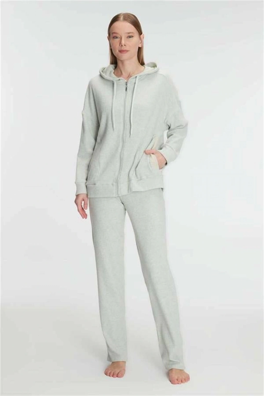 VipMarketim Anıl Kadın Pamuklu Homesuit Kapüşonlu Fermuarlı Ev Giyim Pijama Takımı (Kod:11333)