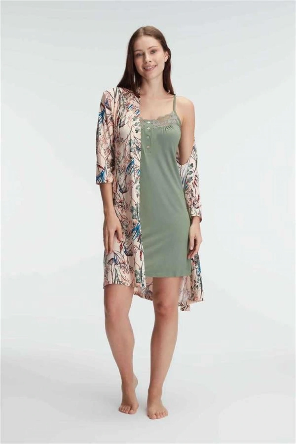 VipMarketim Anıl İp Askılı Oyuk U Yaka Kadın Viskon Çiçek Desenli Yazlık Örme Mini Kısa Gecelik Sabahlık (Kod:5811)