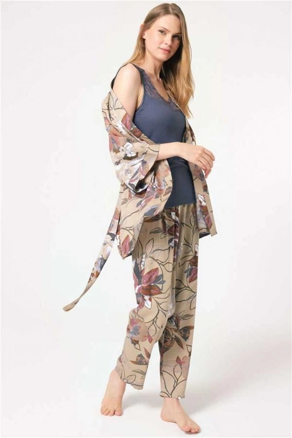 VipMarketim Anıl İp Askılı V Yaka Viskon Çiçek Desenli Kışlık Örme Normal Bel Bağlamalı Dantel Detaylı Pijama Takımı (Kod:5786)