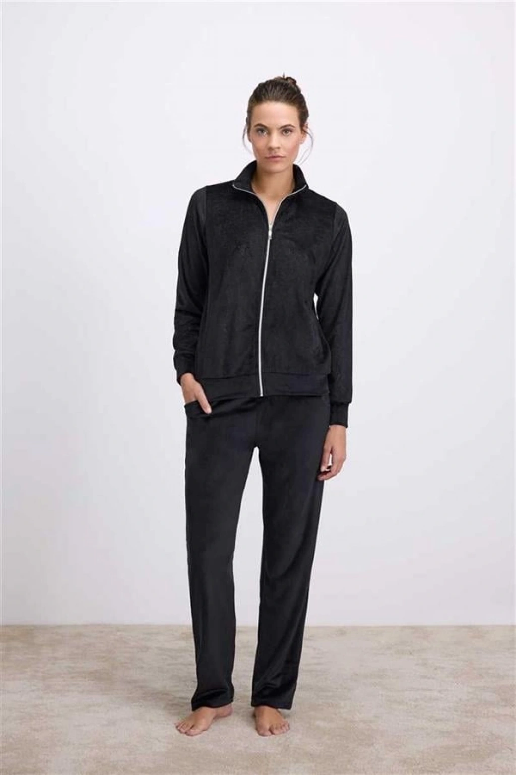 VipMarketim Anıl Kadın Fermuarlı Uzun Kollu Kadife Eşofman Takımı ( ) (Kod:11548)