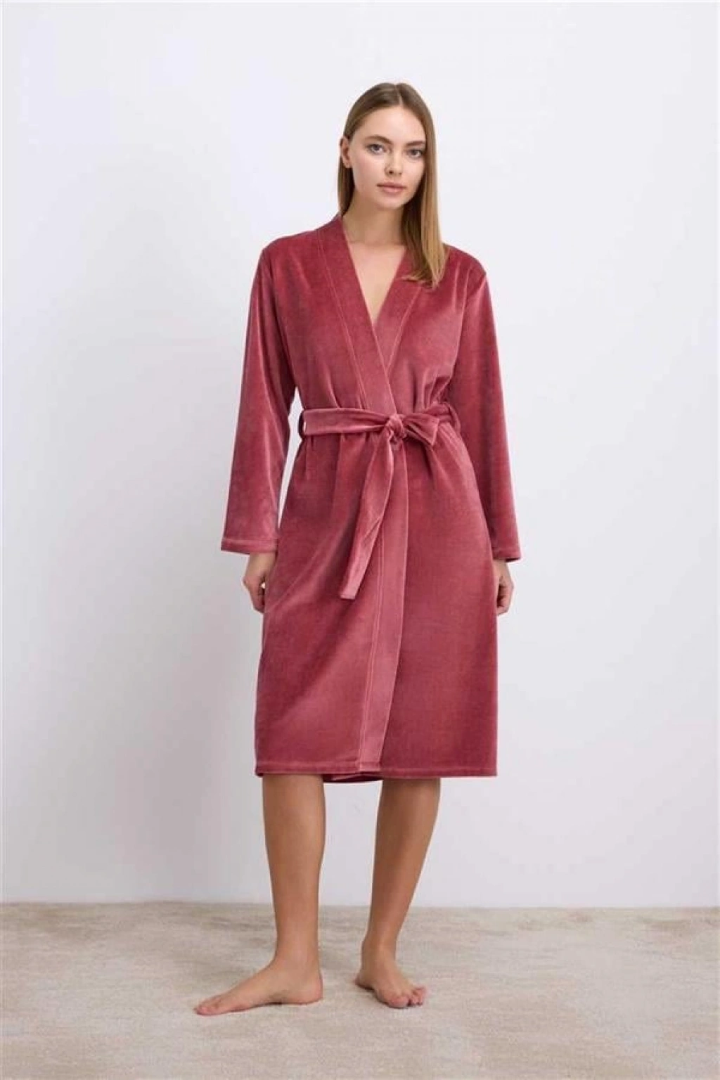 VipMarketim Anıl Kadın Kadife Dokulu Kuşaklı Uzun Kollu Sabahlık ( ) (Kod:11559)