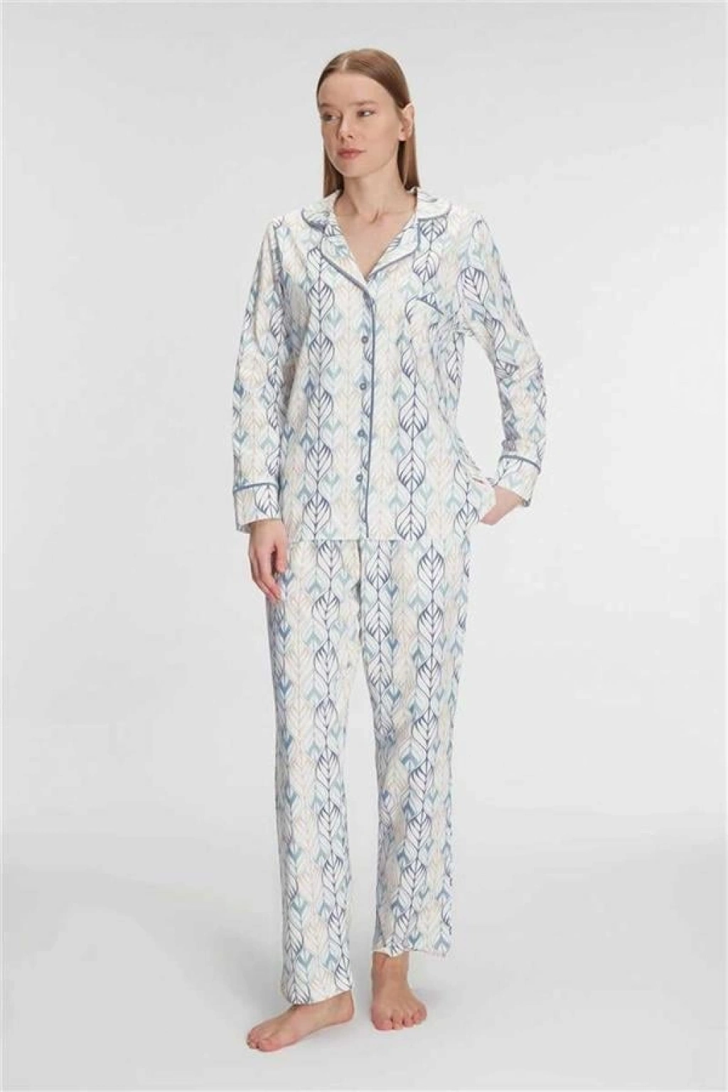 VipMarketim Anıl Kadın Pamuklu Uzun Kol Gömlekli Pijama Takımı (Kod:11262)