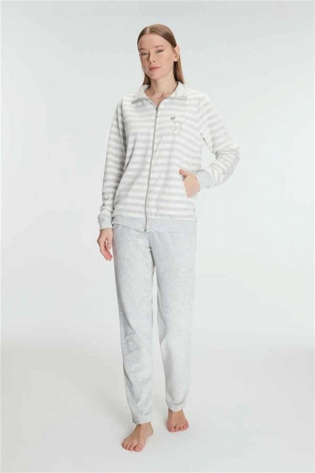 VipMarketim Anıl Kadın Pamuklu Uzun Kollu Fermuarlı Sweatshirt Ve Pantolon Takım Pijama Takımı (Kod:11326)