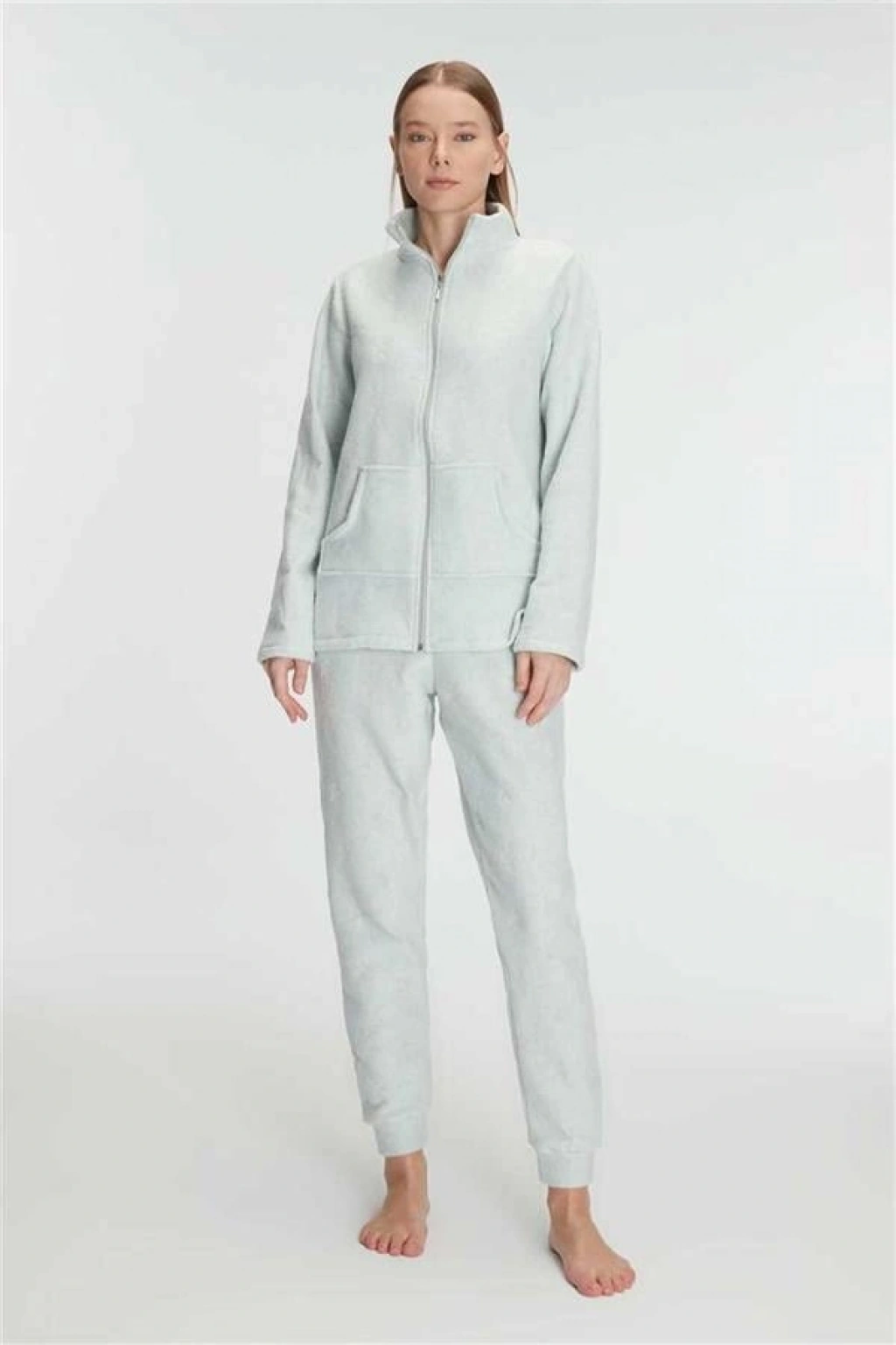 VipMarketim Anıl Kadın Polar Fermuarlı Sweatshirt Ve Pantolon Takımı, Yumuşacık, Kışlık Pijama Takımı (Kod:11329)
