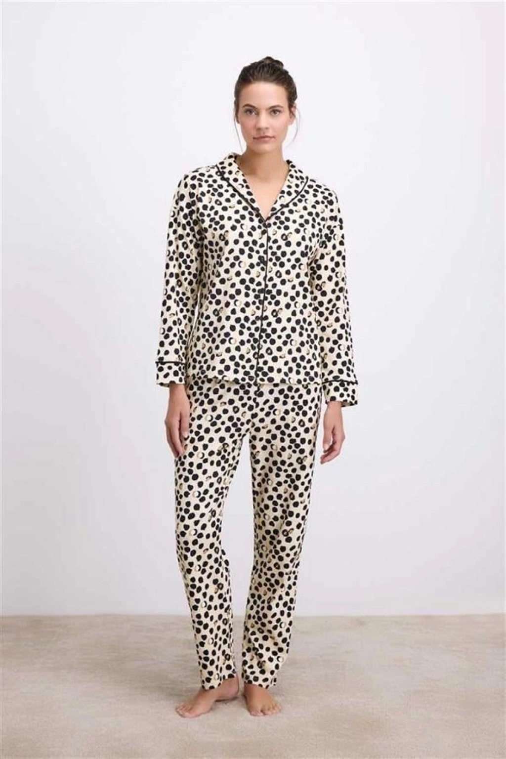 VipMarketim Anıl Kadın Uzun Kollu Gömlek Yaka Leopar Desenli % Pamuk Pijama Takımı 11550 (Kod:100)