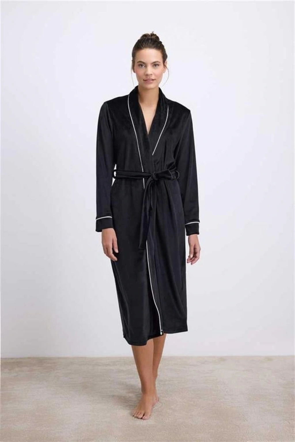 VipMarketim Anıl Kadın Uzun Kollu, Kadife Dokulu, Kuşaklı Sabahlık ( ) (Kod:11543)