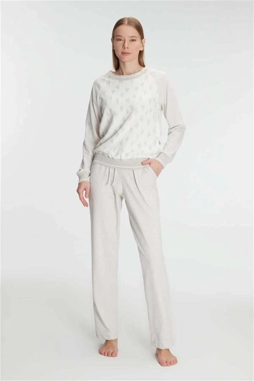 VipMarketim Anıl Kadın Uzun Kollu Sweatshirt Pantolon Takım Pijama Takımı (Kod:11241)