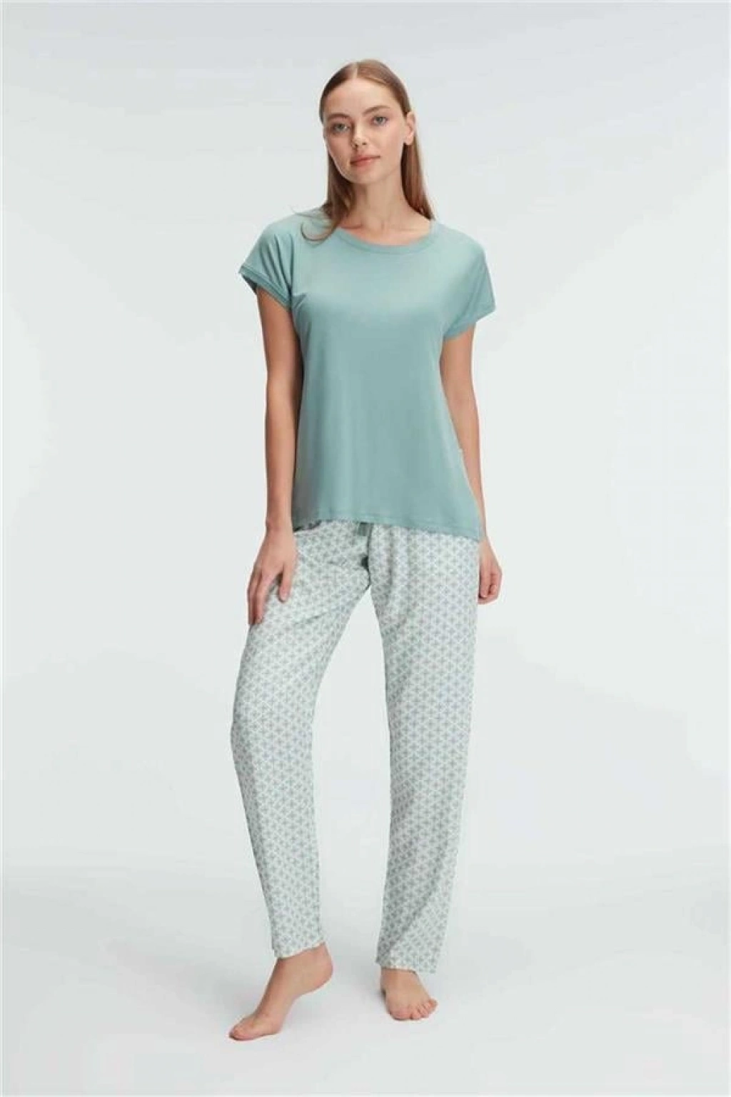 VipMarketim Anıl Kısa Kol Bisiklet Yaka Kadın Viskon Çiçek Desenli Yazlık Örme Normal Bel Pijama Takımı (Kod:9919)