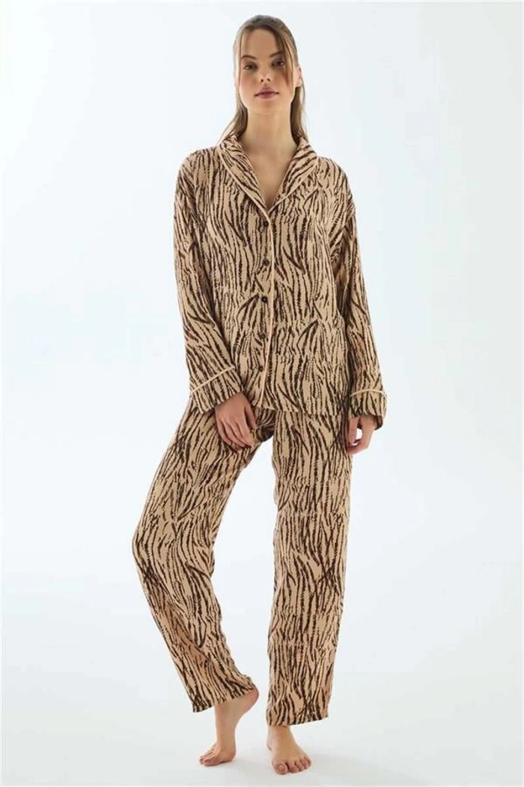 VipMarketim Anıl Uzun Kol Gömlek Ve Pantolon Viskon Pijama Takımı (Kod:11500)