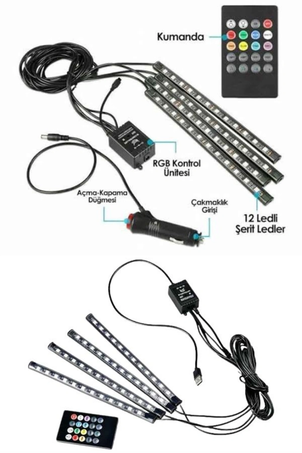Aracınızın iç mekanında hem şıklığı hem de konforu artırmak isteyenler için tasarlanan bu 12 LED’li RGB şerit aydınlatma seti, sesle senkronize çalışan yapısı sayesinde müzikle uyum içinde yanarak etkileyici bir atmosfer oluşturur. Her biri 12 adet güçlü 5050 SMD LED barındıran 4 esnek şerit, 3M yapışkan bantları sayesinde aracınızın ayak altı gibi stratejik noktalarına kolayca monte edilir. Uzaktan kumanda ile kontrol edilen bu sistemde 8 farklı renk modu, 4 müzik senkronizasyon seçeneği, 2 geçiş efekti ve parlaklık ayarı gibi birçok özelliğe kolayca erişebilirsiniz. 12V elektrik sistemiyle çalışan ürün, tüm binek araçlarla uyumludur ve çakmaklık soketiyle kolayca çalıştırılır. Su sıçramalarına karşı dayanıklı IP5 koruma derecesi, uzun süreli ve güvenli kullanım sağlar. 1,2 m ve 1,7 m uzunluğundaki kablolar sayesinde LED şeritleri dilediğiniz noktaya rahatlıkla konumlandırabilirsiniz. Estetik ve fonksiyonelliği bir arada sunan bu set, araç içi ambiyansınızı benzersiz hale getirmenin pratik bir yoludur.
