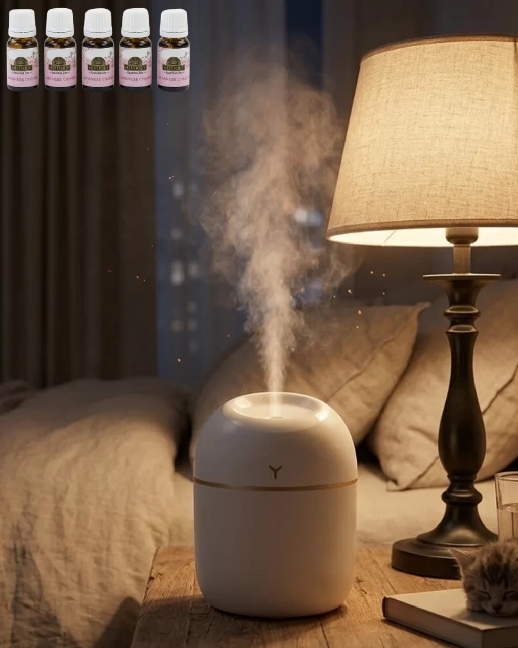 Sağlıklı bir yaşam için bulunduğunuz ortamın havası büyük önem taşır. Bu mini hava nemlendirici, ortamın nem dengesini sağlayarak daha konforlu bir hava sunar. Özellikle kuru hava nedeniyle oluşan rahatsızlıkları azaltmaya yardımcı olur.5 esans hediyesi ile birlikte gelen bu ürün, aromaterapi deneyimini doğrudan yaşamanızı sağlar. Farklı kokular ile bulunduğunuz ortamı daha keyifli hale getirebilirsiniz.LED ışık özelliği sayesinde estetik bir görünüm sunar. Yaklaşık 4 saat çalışma süresi ile uzun süreli kullanım sağlar. Otomatik kapanma özelliği ile güvenli kullanım sunar.Sessiz çalışma özelliği sayesinde her ortamda rahatlıkla kullanılabilir.