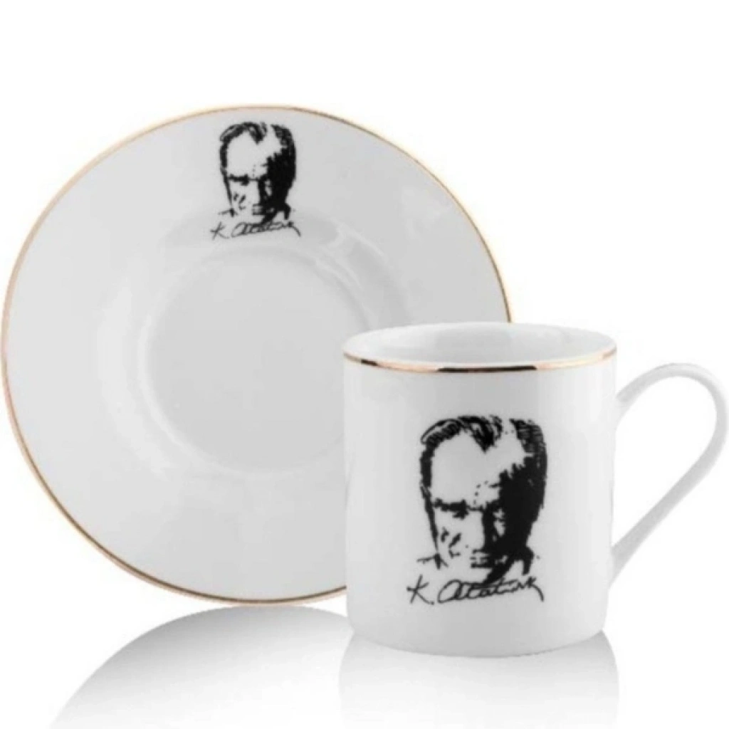 Atatürk Tasarımlı Porselen 2’li Kahve Seti, sade ve zarif tasarımıyla kahve sunumlarına anlam katan özel bir settir. Kaliteli porselen malzemeden üretilmiş olan fincanlar, hem günlük kullanım hem de özel misafir ağırlamalarında estetik bir görünüm sunar. Üzerindeki Atatürk temalı tasarım, seti hem dekoratif hem de duygusal bir değer taşıyan bir ürün haline getirir. Porselen fincanların ısı koruma özelliği kahvenin aromasını daha uzun süre muhafaza ederken, tabakları fincana tam uyum sağlayarak şık bir sunum oluşturur. Hediye olarak da tercih edilebilecek özel bir kahve setidir.Paket İçeriği1 adet Atatürk Tasarımlı Porselen 2'li Kahve Seti
