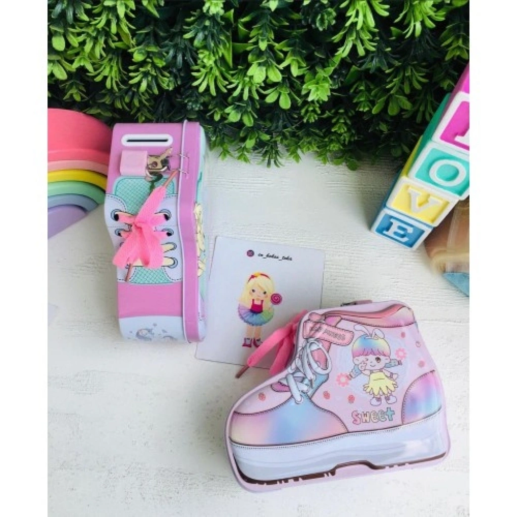 Ayakkabı Tasarımlı Kumbara: Adım Adım Tasarrufa!Çocuklarınıza tasarruf etmeyi eğlenceli ve yaratıcı bir şekilde öğretmek mi istiyorsunuz? Ayakkabı Tasarımlı Kumbara tam size göre! Sevimli ayakkabı tasarımı ile çocukların dikkatini çeken bu kumbara, para biriktirmeyi de keyifli hale getiriyor.Özellikleri:Eğlenceli ve Yaratıcı Tasarım: Gerçek bir ayakkabıdan ayırt edilemeyen tasarımı ile çocukların ilgisini çeker ve onları para biriktirmeye teşvik eder.Kilitli Mekanizma: Biriktirilen paraların güvenliğini sağlayan kilitli mekanizmaya sahiptir. Böylece çocuklar paralarının güvende olduğunu bilirler.Kaliteli Malzeme: Dayanıklı ve uzun ömürlü kullanım için kaliteli plastik malzemeden üretilmiştir.Tasarruf Alışkanlığı Kazandırır: Çocuklara paranın değerini ve tasarrufun önemini öğreterek, bilinçli birer birey olmalarına katkıda bulunur.Dekoratif ve İşlevsel: Hem kullanışlı bir kumbara hem de şık bir dekorasyon objesi olarak kullanılabilir. Çocuk odalarına renk ve eğlence katar.