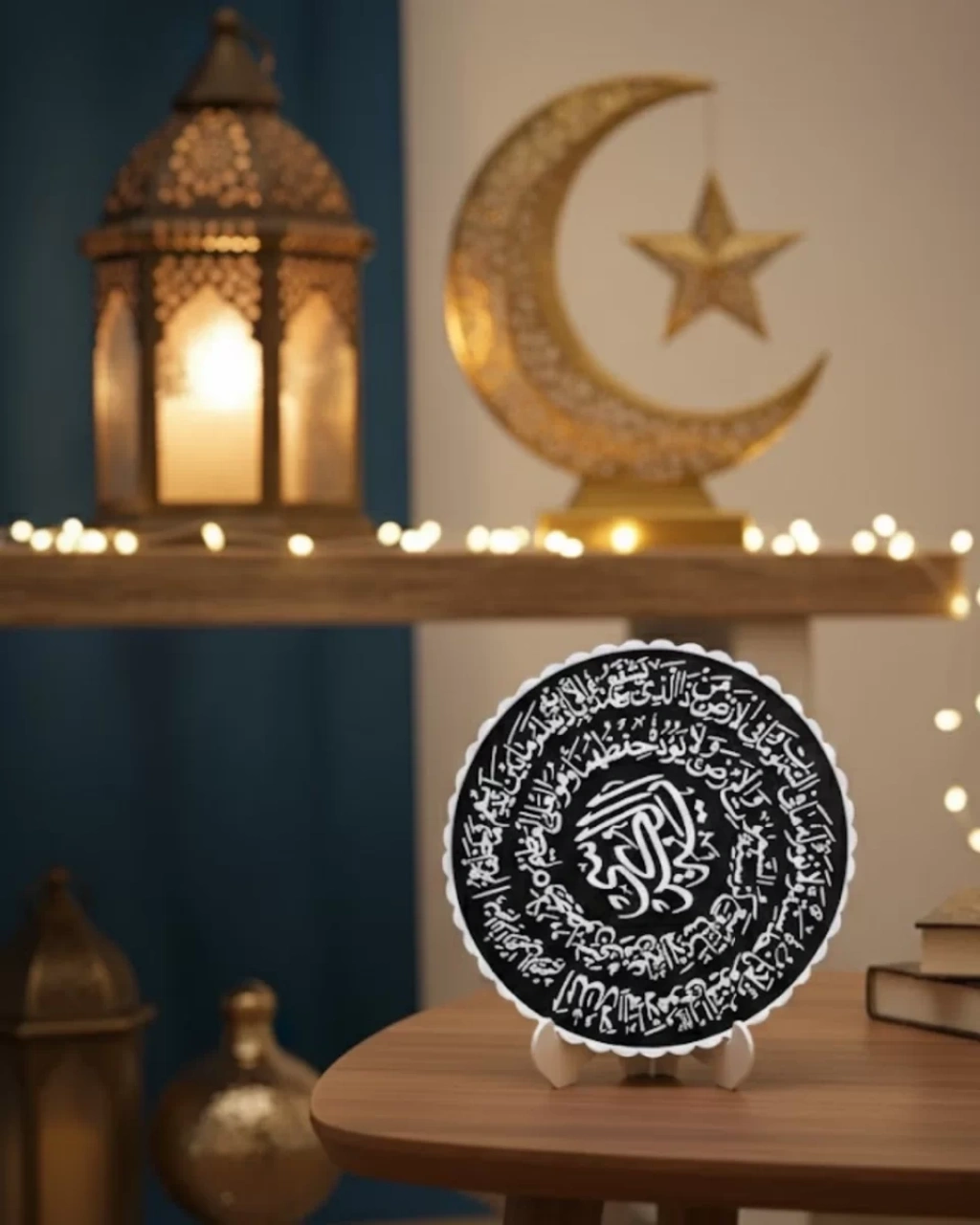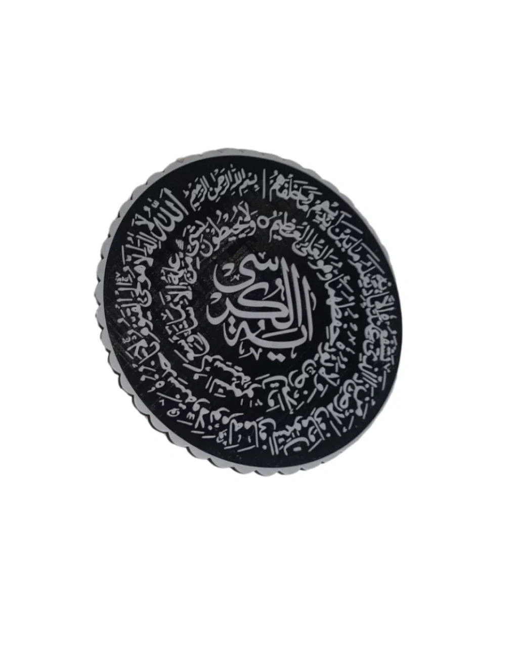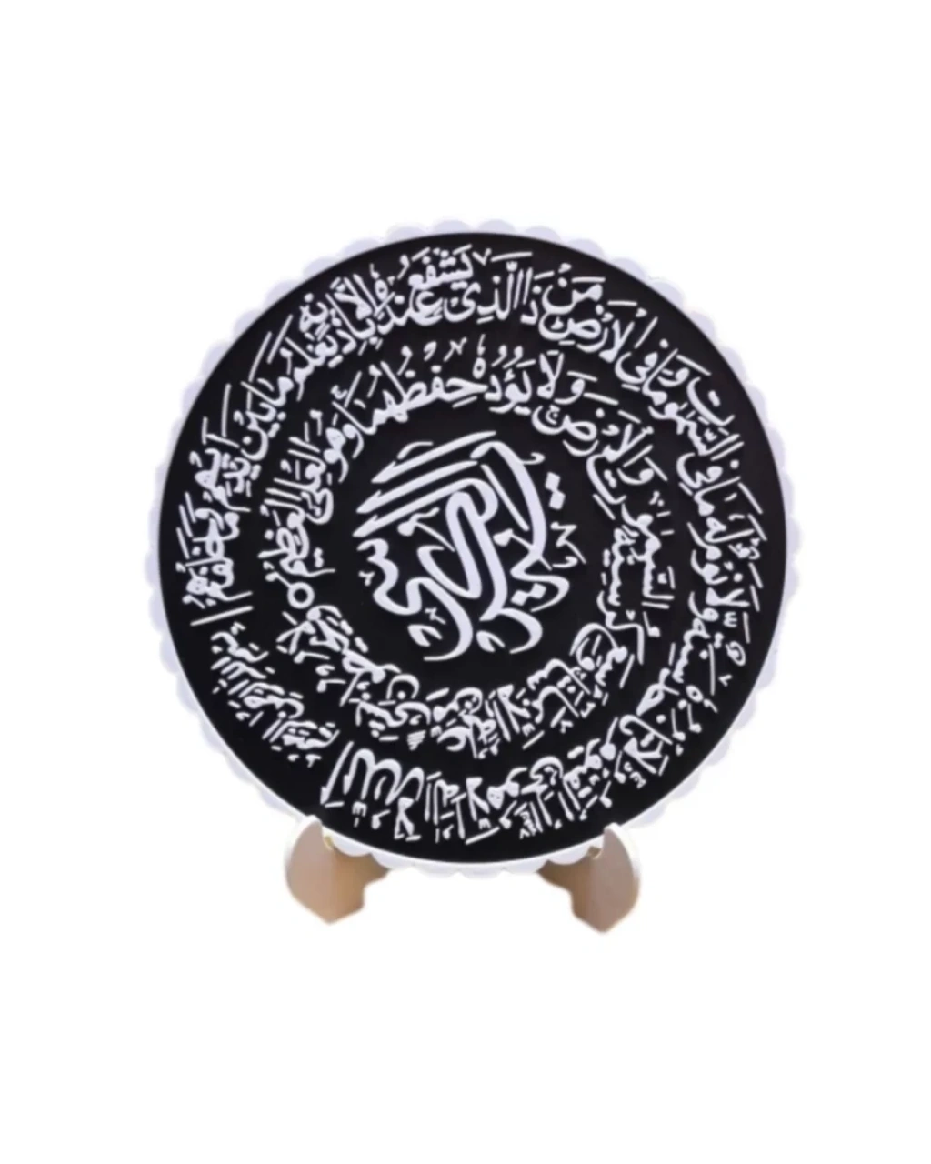 Ayetel Kürsi yazılı bu özel tasarım pano, bulunduğu ortama anlam katan şık bir dekor ürünüdür. Siyah zemin üzerine beyaz yazı tasarımı ile dikkat çekici bir görünüm sunar.Modern ve sade tasarımı sayesinde farklı dekor stilleri ile uyumludur. Standlı yapısı pratik kullanım sağlar.Anlamlı bir hediye alternatifi olarak da tercih edilebilir.
