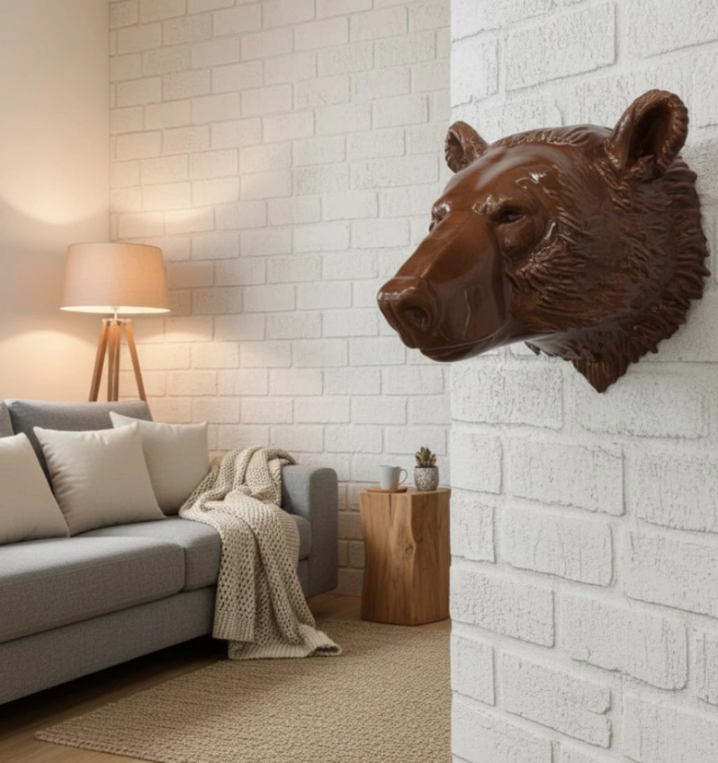 Bu dekoratif ayı başı heykeli, modern dekorasyon anlayışına doğal bir dokunuş katan özel tasarım bir duvar aksesuarıdır. 25 cm x 19 cm ölçülerindeki ürün, orta boyutlu dekoratif öğeler arasında yer alır ve sergilendiği alanda güçlü bir görsel etki oluşturur. Şık kahverengi yüzeyi, doğadan ilham alan dekorasyon stilleriyle mükemmel uyum sağlayarak mekanlara sıcak ve güçlü bir atmosfer katar.Ürün hafif yapısı sayesinde montajı kolaydır ve güvenle duvara sabitlenebilir. Oturma odalarında şöminenin üzeri, çalışma odalarında kitaplık üstü, kafelerde konsepte uygun duvarlar veya fotoğraf stüdyolarında arka plan dekoru olarak rahatlıkla kullanılabilir. Özellikle rustik, bohem, country, loft ve modern tasarımlı mekanlarda karakteristik bir dokunuş sağlar.Ayı figürünün yüz detayları özenle işlenmiş olup dekoratif açıdan gerçekçi bir görünüm sunar. Bu özellik, yalnızca bir duvar süsü değil aynı zamanda mekana anlam katan bir sanat objesi olmasını sağlar. Ev dekorasyonunda güçlü bir duruş isteyenler için ideal bir seçimdir.Hediye olarak tercih edildiğinde oldukça etkileyici bir alternatiftir. Doğal yaşam severlere, koleksiyonerlere, hayvan temalı dekorasyon tercih edenlere veya yeni ev kuranlara özel ve unutulmaz bir hediye sunar. Hem dekoratif hem de anlamlı yapısıyla uzun süre kullanılabilecek bir dekorasyon ürünüdür.