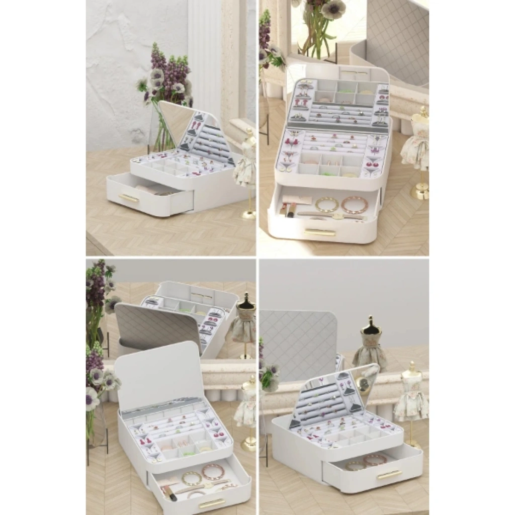 Aynalı takı organizeri, şık ve fonksiyonel tasarımıyla takılarınızı düzenli bir şekilde saklamanız için mükemmel bir çözümdür. İç kısmında bölmeli yapısı sayesinde yüzük, küpe, bileklik ve kolyelerinizi düzenli şekilde yerleştirebilirsiniz. Üst kapağında bulunan ayna sayesinde takılarınızı rahatça takabilir ve kombinlerinize kolayca karar verebilirsiniz. Çekmeceli yapısı ek depolama alanı sunarak büyük takılar için ideal bir saklama alanı oluşturur. Modern ve zarif tasarımı ile hem şıklık hem de kullanım kolaylığı sağlar.Paket İçeriği1 Adet Aynalı Takı Organizeri
