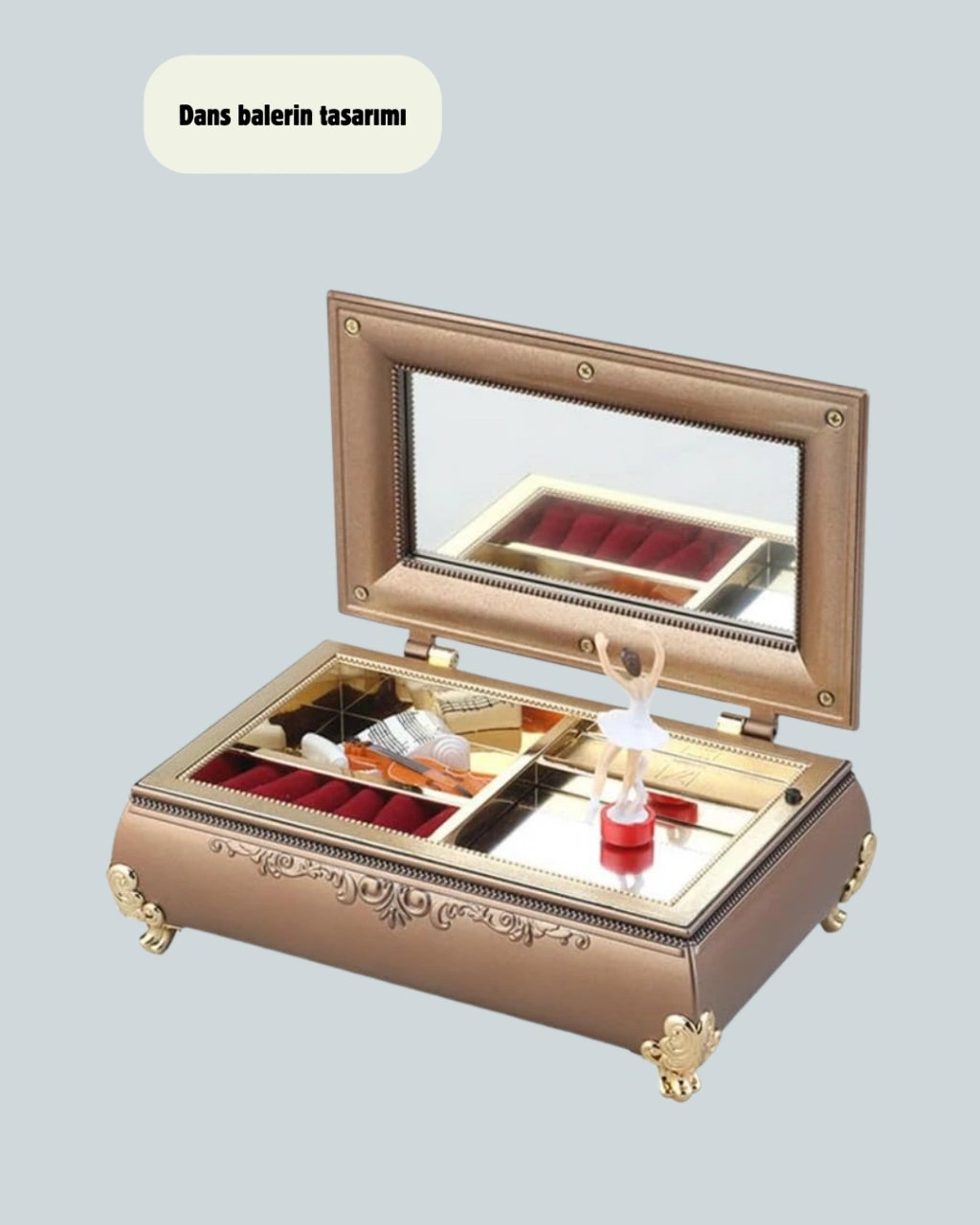 Balerinli müzikli takı kutusu, zarif tasarımı ve piyanoyu andıran şık görünümüyle hem dekoratif hem işlevsel bir ürün arayanlar için mükemmel bir seçenektir. Ürün, gerçek bir piyanonun detaylarını yansıtan estetik çizgilere sahiptir. Üzerindeki boya ve renk uygulaması fırınlama sistemine sahip olduğu için oldukça kaliteli bir görünüm sunar. Parlak dokusu ve modern çizgisiyle çocuk odalarında, genç kızların masalarında ve hediye olarak sunulduğu özel günlerde büyük beğeni toplar.Kutunun kapağı açıldığında içeride balerin figürü yer alır. Bu figür müzik eşliğinde sergilenen hareketleriyle izleyene hoş bir atmosfer sunar. Melodi başladığında oluşan görüntü hem romantik hem de masalsı bir hava yaratır. Özellikle çocukların ilgisini çeken bu tasarım, aynı zamanda dekoratif bir obje olarak da değerlendirilebilir.Takı düzenleme bölmeleri sayesinde işlevselliği oldukça yüksektir. Yüzük, kolye, küpe, bileklik gibi küçük takılar düzenli bir şekilde yerleştirilebilir ve kaybolmadan saklanabilir. Bu yönüyle hem çocuklara hem yetişkinlere kullanım kolaylığı sağlar.Ürün, doğum günü, karne hediyesi, yılbaşı, özel gün kutlamaları gibi pek çok farklı etkinlik için ideal bir hediye seçeneğidir. Hem müzik kutusu hem takı kutusu olarak iki işlevi bir arada sunması, ürünü çok yönlü ve kullanışlı hale getirir.Balerinli müzikli takı kutusu; kaliteli görünümü, dikkat çekici tasarımı, müzikle bütünleşen romantik atmosferi ve takı saklama kolaylığıyla her yaştan kullanıcı için benzersiz bir üründür. Çocukların hayal gücünü beslerken yetişkinlere nostaljik bir mutluluk sunar.