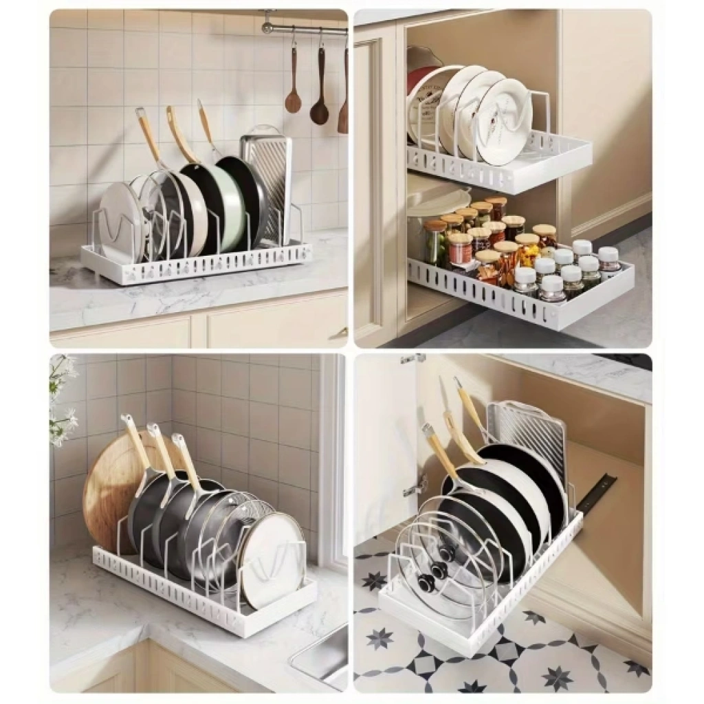 Beyaz renk teleskopik raylı tava tencere organizeri, mutfak dolaplarında dağınıklığı ortadan kaldırmak ve tencere–tava düzenini en verimli şekilde sağlamak için tasarlanmıştır. Ayarlanabilir yapısı sayesinde farklı çap ve derinlikteki mutfak gereçlerine uyum sağlayan teleskopik raylı organizer, dolap içi alanı maksimum verimle kullanmanıza yardımcı olur. Raylı sistemi sayesinde tava ve tencerelere kolay erişim sağlanırken, delme gerektirmeyen yapışkanlı montaj özelliği ile pratik bir kurulum sunar. Dayanıklı metal gövdesi ve paslanmaya karşı dirençli yapısı uzun ömürlü kullanım imkânı verir. Minimal ve sade beyaz tasarımı sayesinde modern mutfak dekorasyonlarıyla uyum sağlayan tava tencere düzenleyici, mutfakta hem düzen hem de estetik görünüm elde etmek isteyen kullanıcılar için ideal bir çözümdür. Ürün Teknik Özellikleri Özellik Açıklama Ürün Adı Beyaz Renk Teleskopik Raylı Tava Tencere Organizeri Renk Beyaz Malzeme Paslanmaz metal Sistem Teleskopik raylı yapı Montaj Yapışkanlı, delme gerektirmez Kullanım Alanı Mutfak dolabı içi Uyumluluk Tava, tencere ve kapaklar Öne Çıkan Özellik Ayarlanabilir ve kayar sistem Paket İçeriği1 adet beyaz renk teleskopik raylı tava tencere organizeri
