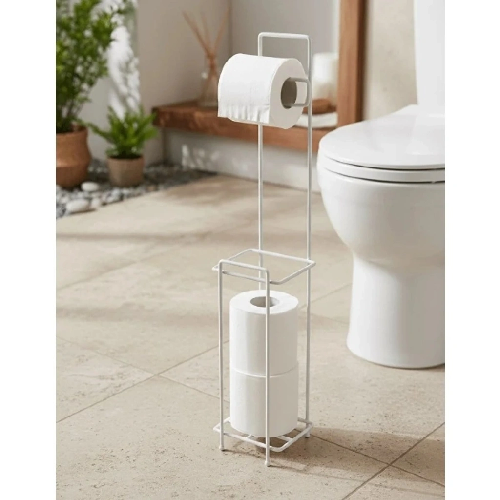 Beyaz standlı yedek hazneli tuvalet kağıtlığı, banyo ve tuvalet alanlarında hem hijyenik hem de düzenli bir kullanım sunmak üzere tasarlanmıştır. Duvar delmeye gerek kalmadan zemine yerleştirilebilen standlı tuvalet kağıtlığı yapısı sayesinde pratik bir çözüm sağlar. Üst bölümde günlük kullanım için tuvalet kağıdı askısı bulunurken, alt kısımda yer alan yedek hazneli kağıtlık alanı sayesinde ekstra rulolar düzenli şekilde saklanabilir. Dayanıklı metal gövdesi uzun süreli kullanım sunarken, beyaz kaplaması banyolara ferah ve modern bir görünüm kazandırır. Minimal tasarımı sayesinde dar alanlarda dahi rahatça kullanılabilen ürün, banyo düzenini korumaya yardımcı olur. Hem ev hem de ofis kullanımına uygun olan çok amaçlı banyo düzenleyici, estetik ve fonksiyonelliği bir arada sunar. Ürün Teknik Özellikleri Özellik Açıklama Ürün Adı Beyaz Standlı Yedek Hazneli Tuvalet Kağıtlığı Malzeme Dayanıklı metal Renk Beyaz Yapı Standlı, zemine yerleştirilebilir Yedek Hazne Alt bölmede yedek rulo saklama alanı Montaj Montajsız, delme gerektirmez Kullanım Alanı Banyo, tuvalet, ofis Kullanım Amacı Düzenleme ve pratik kullanım Paket İçeriği1 adet beyaz standlı yedek hazneli tuvalet kağıtlığı