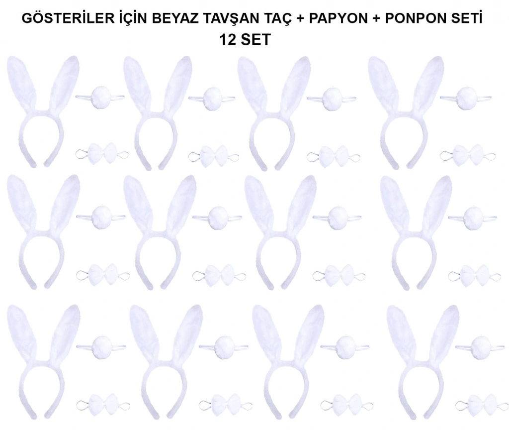 Beyaz Tavşan Kostüm Seti, 12'li paket halinde sunulur ve her set, çocukların kostüm etkinlikleri ve partiler için mükemmel bir seçimdir. Set, tavşan taçı, papyon ve kuyruğu içerir. Beyaz renkli ve sevimli tasarımıyla çocuklar için ideal olan bu set, kostüm partileri, okul etkinlikleri veya doğum günü kutlamaları gibi özel günlerde kullanılabilir. Her bir parça, rahat ve esnek malzemelerden üretilmiştir, bu sayede uzun süre rahatlıkla kullanılabilir. Set, özellikle grup etkinlikleri ve toplu kostüm etkinliklerinde tercih edilebilir. Paket İçeriği12 Adet Beyaz Tavşan Kostüm Seti (Her Set: 1 Adet Taç, 1 Adet Papyon, 1 Adet Kuyruk)