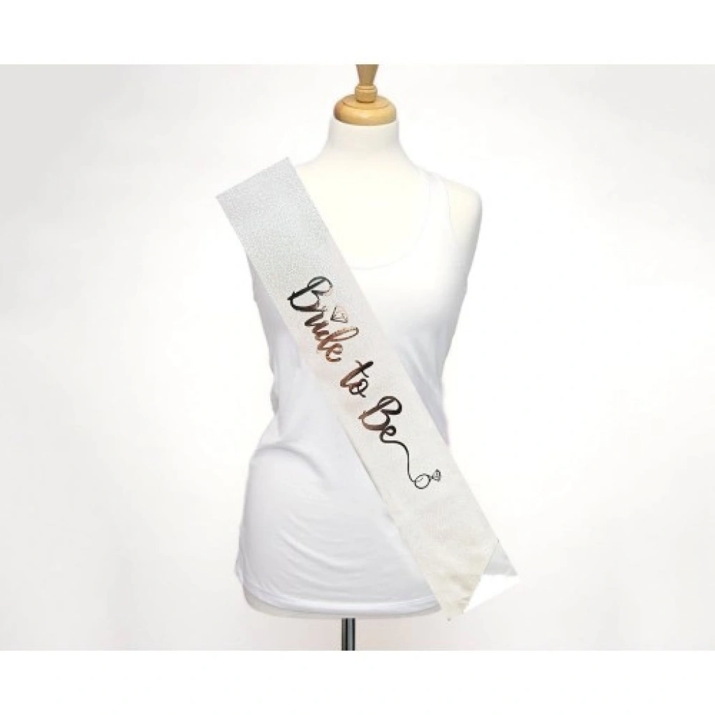 ve AvantajlarıÖzel İtalik Alyans Detayı: Yazının başındaki zarif alyans ikonu, evlilik yolculuğunuzun en anlamlı sembolünü kuşağınıza taşıyarak tasarımı özelleştirir.Göz Alıcı Simli Işıltı: Yüksek kaliteli simlerle işlenmiş "Bride To Be" yazısı, ışık altında parlayarak fotoğraflarda ve videolarda muazzam bir netlik sunar.İdeal Genişlik ve Konfor (10x80 cm): 10 cm genişliği sayesinde omuzda kayma yapmaz ve yazı net bir şekilde okunur. Yumuşak tekstil dokusu elbisenize zarar vermez.A Kalite İthal Ürün: Yurt dışından ithal edilen bu özel kuşak, kumaş kalitesi ve baskı dayanıklılığı ile piyasadaki ince şeritlerden ayrılır.Evrensel Uyum: Standart ölçüleri sayesinde her vücut tipine uyum sağlar; çengelli iğne veya küçük bir düğümle istediğiniz darlıkta sabitleyebilirsiniz.Kullanım Alanları ve Kombin ÖnerileriBekarlığa Veda Partileri (Hen Night): Gecenin kraliçesi olduğunuzu herkese hissettirin. Beyaz saten bir elbise veya şık bir jean-tshirt kombinini anında parti moduna sokar.Save the Date Çekimleri: Dış çekimlerde veya stüdyo karelerinde modern bir aksesuar olarak kullanarak anılarınızı ölümsüzleştirin.Gelin Hamamı ve Sabahlığı: Hazırlık aşamasında sabahlığınızın üzerine takarak keyifli kareler yakalayın.Hediye Seçeneği: En yakın arkadaşınızın bu özel gününde ona kendisini özel hissettirecek, kaliteli ve kalıcı bir hediye.