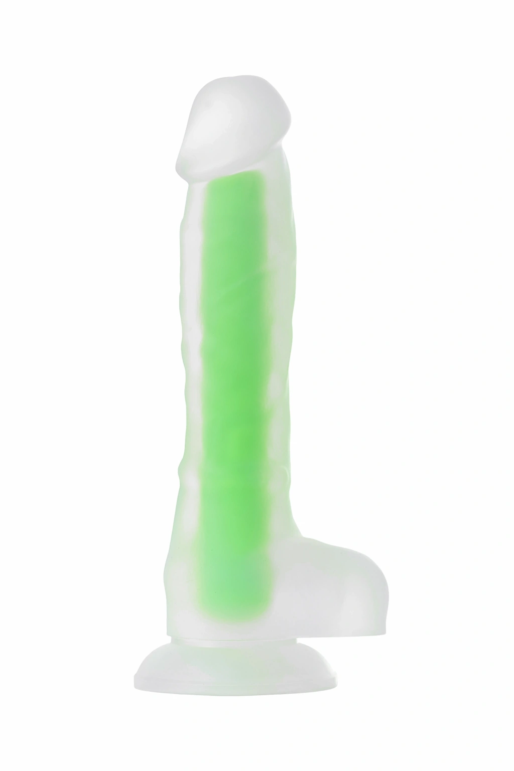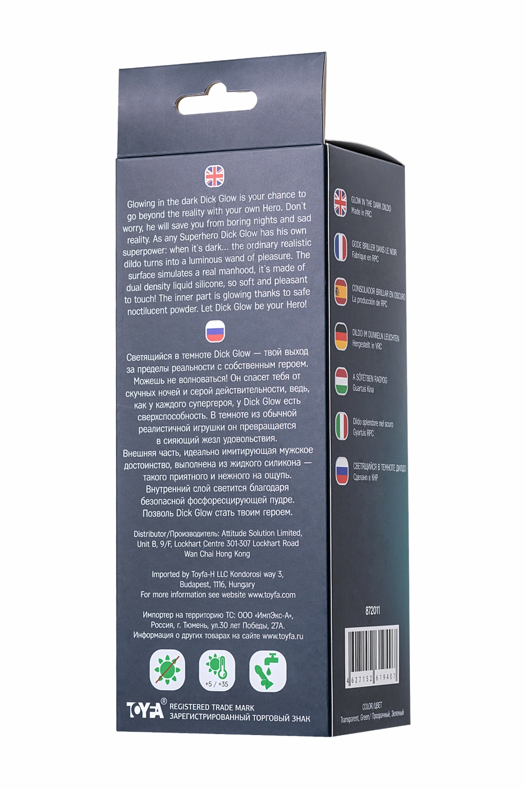 Gece parlayan Dick Glow, kendi kahramanınızla gerçekliğin ötesine geçmenizdir. Endişelenmene gerek yok! Seni sıkıcı gecelerden ve gri gerçeklikten kurtaracak, çünkü her süper kahraman gibi Dick Glow'un da süper gücü var. Her zamanki gerçekçi oyuncağın karanlığında, parlayan bir zevk çubuğuna dönüşür. Erkekleri mükemmel bir şekilde taklit eden dış kısım, sıvı silikondan yapılmıştır - çok hoş dokulu ve yumuşaktır. İç tabaka, güvenli fosforlu toz sayesinde parlar. Dick Glow'un senin kahramanın olmasına izin ver.