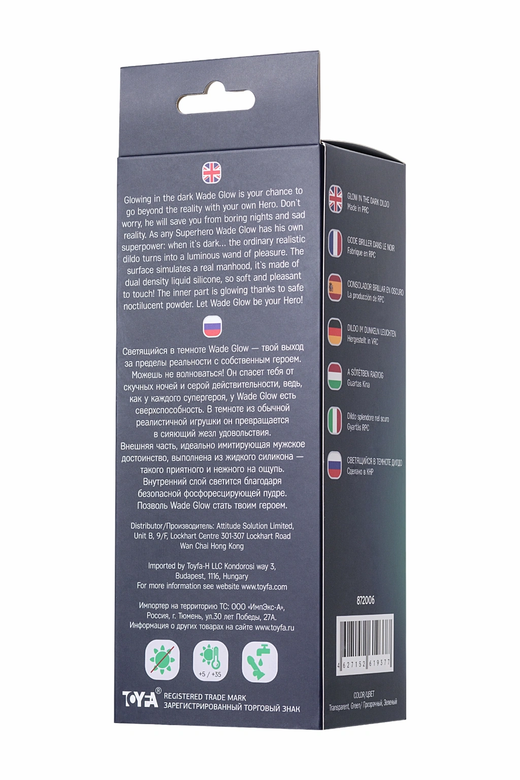 Gece parlayan Wade Glow, kendi kahramanınızla gerçekliğin ötesine geçmenizdir. Endişelenmene gerek yok! Seni sıkıcı gecelerden ve gri gerçeklikten kurtaracak, çünkü her süper kahraman gibi Wade Glow'un da süper gücü var. Her zamanki gerçekçi oyuncağın karanlığında, parlayan bir zevk çubuğuna dönüşür. Erkekleri mükemmel bir şekilde taklit eden dış kısım, sıvı silikondan yapılmıştır - çok hoş dokulu ve yumuşaktır. İç tabaka, güvenli fosforlu toz sayesinde parlar. Wade Glow'un senin kahramanın olmasına izin ver.