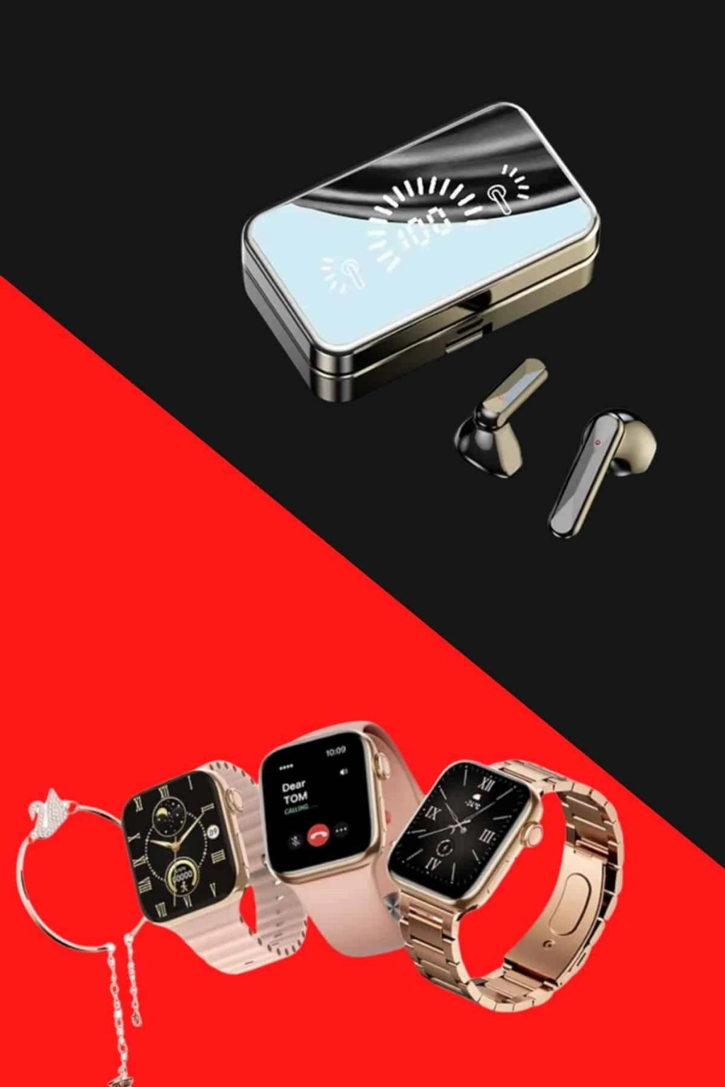AKILLI SAATYeni Nesil Mini Kadın Akıllı Saat, şıklığı ve fonksiyonelliği bir araya getiren tasarımıyla kadınlar için ideal bir seçenek sunuyor. Almanya üretimi ultra dayanıklı model, özel wireless şarj özellikleriyle öne çıkıyor ve Türkçe menüsü sayesinde kullanıcı dostudur. Kutu içeriğinde, mini akıllı saat, 3 farklı kordon, hediye bileklik, wireless şarj kablosu ve kullanım kılavuzu bulunmaktadır. Şık pembe kutusu, hediye olarak tercih edilmesini sağlayan bir özellik taşır. 41 mm kavisli oval kenarlı yeni tasarımı ve 1,70 inç AMOLED ekranı ile yüksek çözünürlükte HD görüntü sağlar.Saat, nabız ölçer, uyku izleyici, kan basıncı, tansiyon, EKG ve vücut sıcaklığı ölçer gibi sağlık izleme özellikleriyle sağlığınızı takip etmenizi sağlar. 117 farklı spor modu ve adım, kalori, kalp ritmi ölçme gibi özellikler ile aktivite takibini oldukça detaylı yapabilirsiniz. Ayrıca akıllı hatırlatıcılar sayesinde su içme ve hareketsizlik gibi hatırlatmalar alabilir, tüm bildirimleri ve mesajları anında saatinizde görebilirsiniz.Bluetooth bağlantısı ile yüksek kaliteli müzik dinleyebilir ve uzaktan fotoğraf çekme özelliği ile fotoğraflarınızı kolayca çekebilirsiniz. Suya dayanıklı yapısı, günlük kullanımda sıklıkla tercih edilmesini sağlar; ancak deniz ve havuz gibi basınçlı suya karşı su geçirmez.Saatin sunduğu diğer özellikler arasında Türkçe ve çoklu dil desteği, saatimi bul, telefonumu bul, alarm, kronometre, hava durumu, hesap makinesi gibi fonksiyonlar bulunur. Kordonu değiştirilebilir, bu sayede kişisel tercihlere göre tasarımı özelleştirilebilir. 24 ay garanti süresi ile kullanıcılarına güvenli bir deneyim sunar.KULAKLIKTelefonu şarj etme özelliğine sahip olan bu kulaklık, çift dijital gösterge sayesinde pil seviyesini anlık olarak takip etme imkanı sunar. Güçlendirilmiş bass özelliği ile müzik deneyiminizi üst seviyeye taşırken, konuşmalarda gürültü önleyici fonksiyonu sayesinde sesinizin karşı tarafa net bir şekilde iletilmesini sağlar.Bluetooth 5.0 teknolojisi ile 10 metreye kadar kesintisiz bağlantı sunan kulaklık, IPX5 su geçirmezlik seviyesine sahip olan model, hafif su sıçramalarına karşı dayanıklıdır. 50mAh kulaklık pili ve 2000mAh şarj çantası ile donatılan ürün, 5-6 güne kadar kullanım süresi sunar. Yaklaşık 4-5 saat içinde tamamen şarj olan kulaklık, tekli veya çiftli kullanım modlarını destekler.Dokunmatik kontrol özellikleri sayesinde müzik çalma/duraklatma ve çağrı cevaplama işlemlerini kolayca gerçekleştirebilirsiniz. iOS güç göstergesi ve sesli komut istemi gibi ek fonksiyonlarla donatılmış olan bu model, şık siyah tasarımı ile dikkat çeker. Paket içeriğinde 2 adet Bluetooth kulaklık, 1 adet şarj kutusu, 1 adet şarj kablosu ve 1 adet kullanım kılavuzu bulunmaktadır.