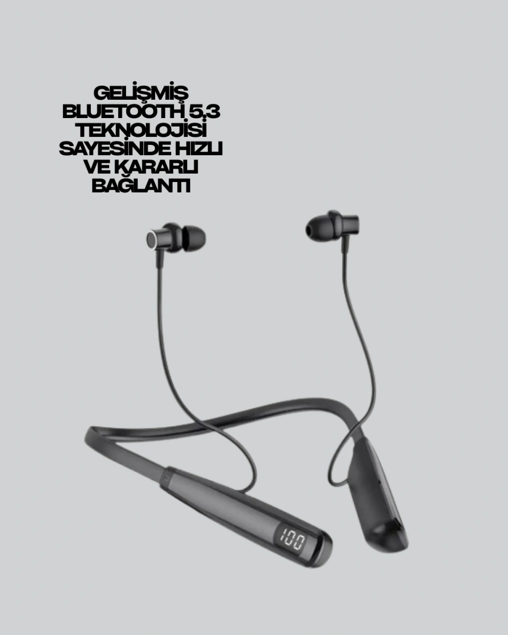 Bu Y12 model uyumlu boyun askılı Bluetooth kulaklık, günlük kullanım ve spor aktivitelerinde konfor ve performansı bir arada sunmak üzere tasarlanmıştır. Gelişmiş Bluetooth 5.3 teknolojisi sayesinde cihazınıza hızlı, kararlı ve düşük gecikmeli bağlantı sağlar; böylece müzik dinlerken ya da oyun oynarken ses iletimi neredeyse gecikmesiz olur. Ergonomik 45 derece eğimli kulaklık başlıkları, kulağa mükemmel uyum sağlayarak uzun süreli kullanımlarda rahatsızlık hissini minimuma indirir. Cilt dostu sıvı silikon boyun askısı ise hem hafif hem dayanıklı yapısıyla boynunuzda konforlu bir kullanım deneyimi sunar.Kulaklıklar, güçlü kompozit diyafram sürücüleriyle zengin, dengeli ve detaylı bir ses performansı sağlar; net tizler ve derin baslar müzik keyfinizi artırır. Aktif gürültü engelleme (ANC) özelliği sayesinde dış ortam gürültüsünü azaltarak, ortamdan bağımsız olarak odaklanmanıza yardımcı olur. Manyetik kulaklık başlıkları, kullanılmadığında birbirine yapışarak dağınıklığı önler ve kulaklıklarınızın kaybolma riskini azaltır.Cihazın güçlü bataryası, tam şarjla 100 saate kadar kesintisiz müzik veya çağrı deneyimi sunar, böylece şarj konusunda endişelenmeden uzun süre kullanım sağlayabilirsiniz. Şarj kutusundaki dahili LCD ekran, kulaklıkların ve kutunun pil seviyesini anlık olarak göstererek, şarj durumunu kolayca takip etmenizi sağlar. Hızlı şarj desteği sayesinde kısa süreli şarjlar bile kullanım süresini önemli ölçüde uzatır.Kulaklık üzerindeki dokunmatik kontrol paneli, telefonunuza dokunmadan çağrıları yanıtlamanıza, müziği duraklatıp başlatmanıza veya parçalar arasında geçiş yapmanıza olanak tanır. Ses kontrolü de doğrudan kulaklık üzerinden yapılabilir, bu sayede cihazınıza ulaşmadan ses seviyesini ayarlayabilirsiniz. Ayrıca hafıza kartı (Micro SD) desteği sayesinde, favori müziklerinizi telefon olmadan kulaklık üzerinden dinleyebilirsiniz.Y12 Bluetooth boyun bantlı kulaklık, Apple ve Android cihazlarla tam uyumlu çalışarak geniş bir kullanıcı kitlesine hitap eder. Hafif, şık ve dayanıklı tasarımı ile günlük yaşamda ve spor aktivitelerinizde vazgeçilmez bir aksesuar haline gelir. Kutu içeriğinde Y12 Bluetooth kulaklık, Type-C şarj kablosu, yedek silikon uçlar ve kullanım kılavuzu bulunmaktadır.
