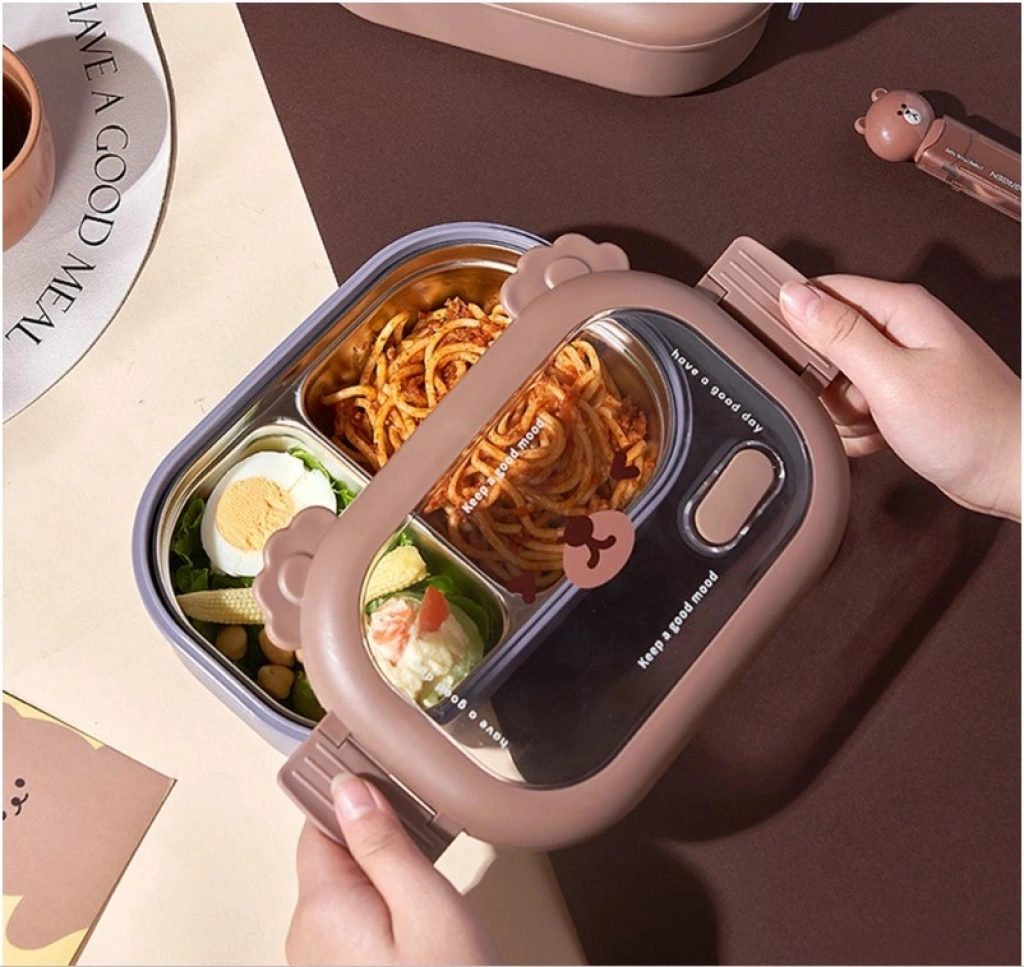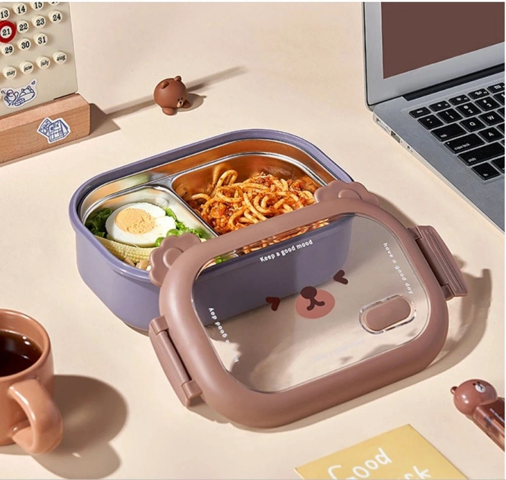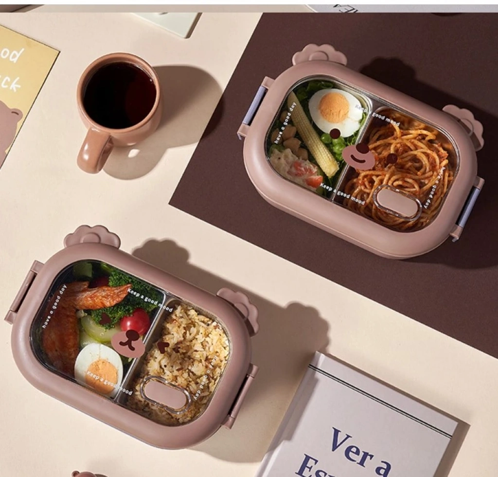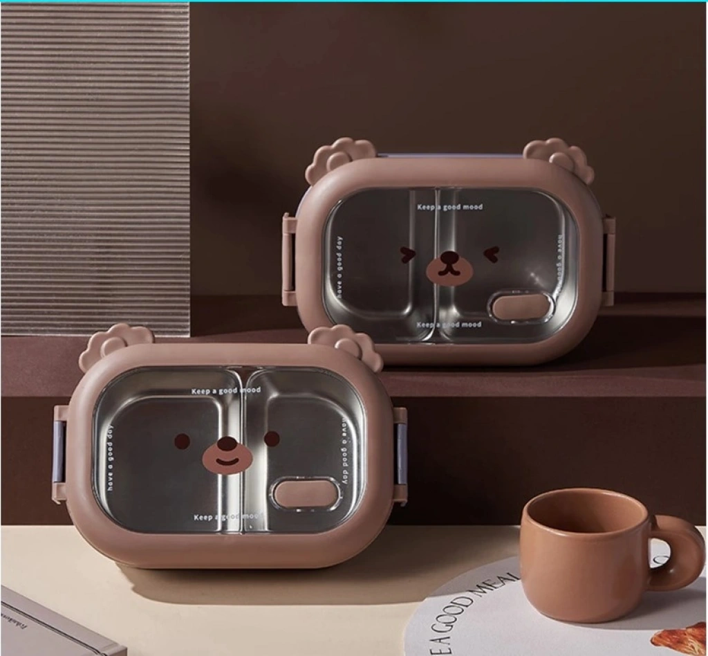 Bölmeli Sevimli Hayvan Tasarımlı Paslanmaz Çelik Yemek KutusuGörselde, sevimli bir hayvan yüzü tasarımıyla öne çıkan, bölmeli paslanmaz çelik yemek kutuları bulunuyor. Bu tür ürünler, çocuklar için özellikle çekici ve pratik öğle yemeği saklama çözümleri sunar.Ürün Açıklaması:Bu sevimli hayvan tasarımlı paslanmaz çelik yemek kutusu, çocukların öğle yemeklerini güvenle taşıması ve tüketmesi için mükemmel bir seçimdir. İçerisindeki iki ayrı bölme sayesinde farklı yiyecekleri bir arada tutmanıza olanak tanır. 304 kalite paslanmaz çelikten üretilmiştir ve sağlıklı bir yemek saklama deneyimi sunar. Sızdırmaz kapağı sayesinde yiyeceklerinizin dökülmesini önler ve çocuğunuzun çantasında güvenle taşınabilir. Şirin hayvan yüzü tasarımı ile çocukların favorisi olacak bu yemek kutusu, hem pratik hem de eğlencelidir.Paket İçeriği:1 Adet Bölmeli Sevimli Hayvan Tasarımlı Paslanmaz Çelik Yemek Kutusu