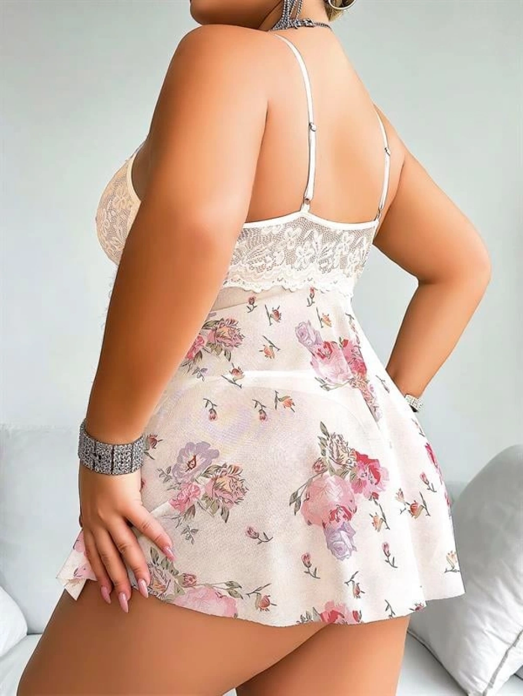 Zarif çiçek desenleri ve romantik dantel detaylarıyla gecelerinize şıklık katın! Beyaz zemin üzerinde renkli çiçeklerle hareket kazanan bu mini gecelik, ince askıları ve yumuşak dokusuyla hem rahat hem de göz alıcı bir uyku deneyimi sunar.