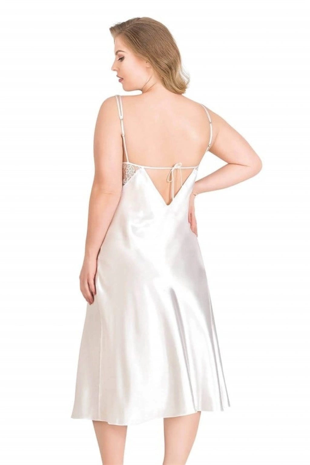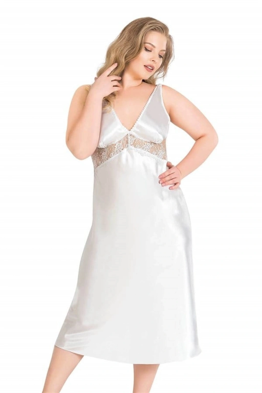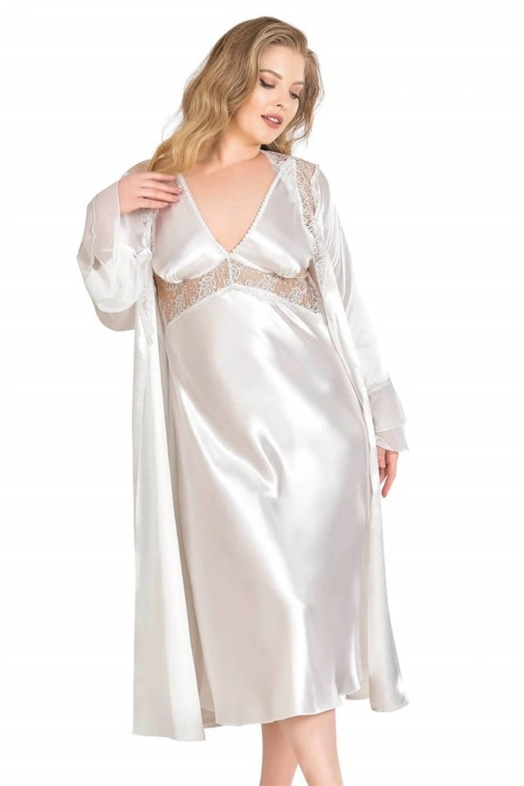 Büyük Beden Ekru Uzun İkili Saten Sabahlık Gecelik Takımı 6169