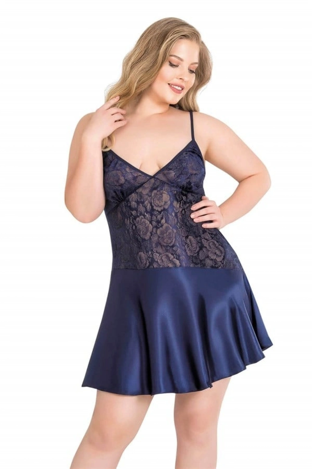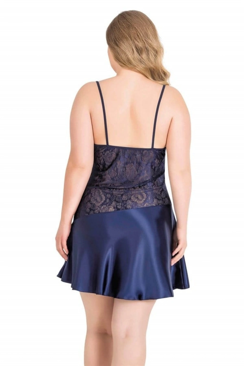 Büyük Beden Lacivert Kısa Saten Gecelik 2068
