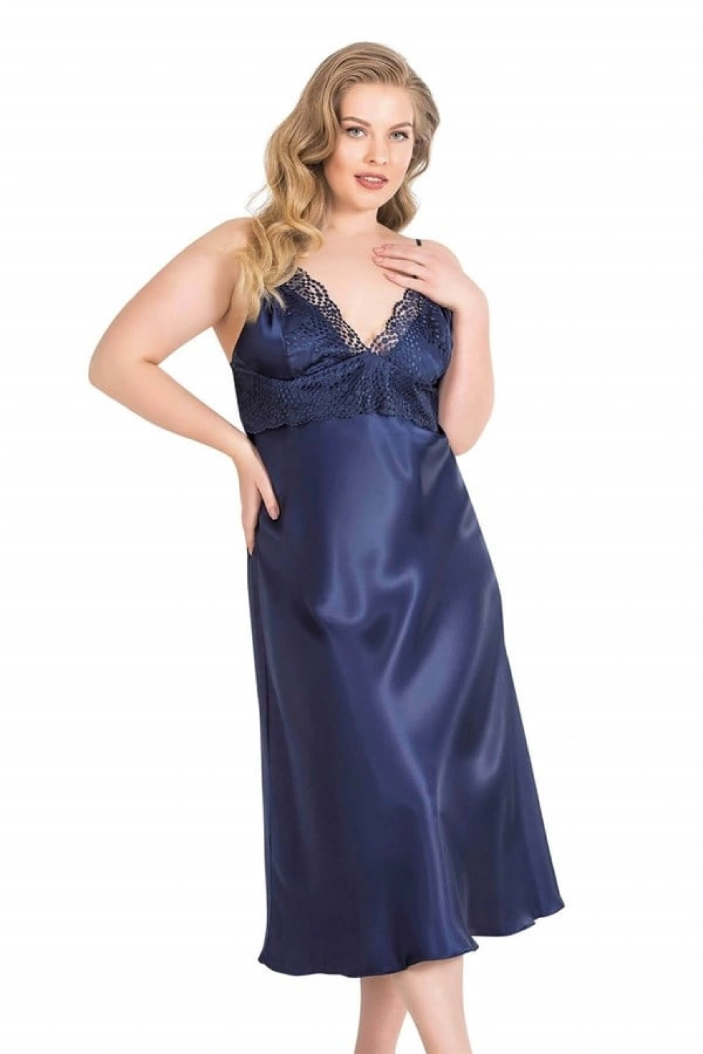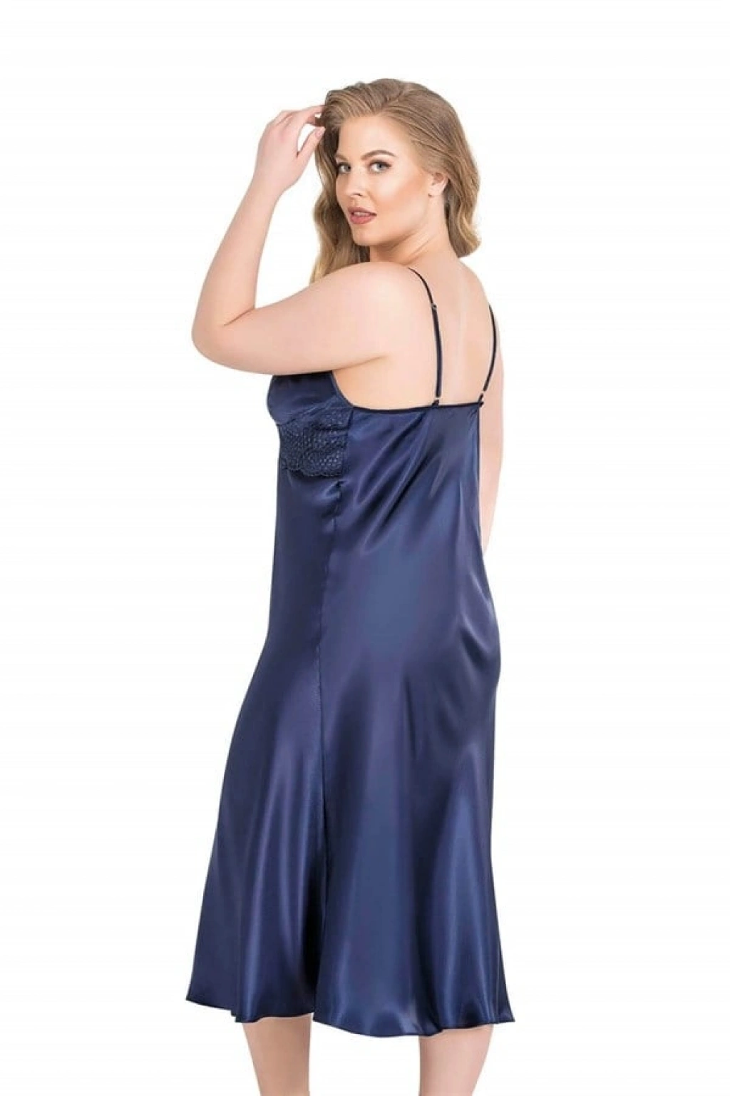 Büyük Beden Lacivert Uzun İkili Saten Sabahlık Gecelik Takımı 6170