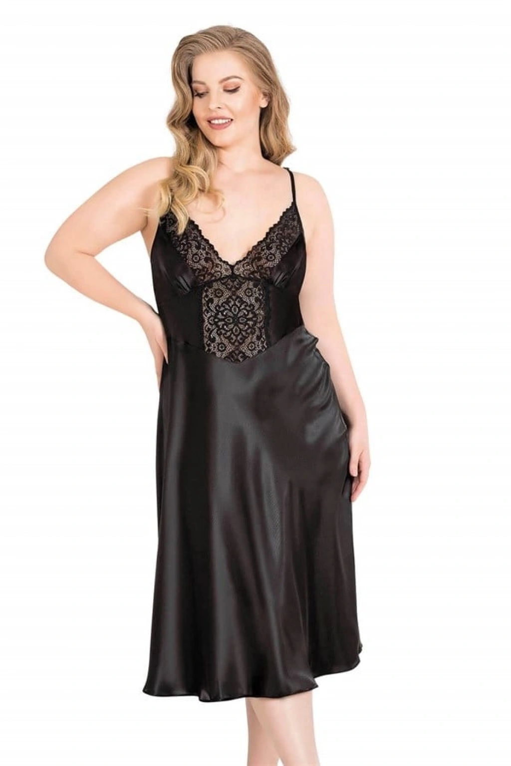 Büyük Beden Siyah Uzun Saten Gecelik 2070