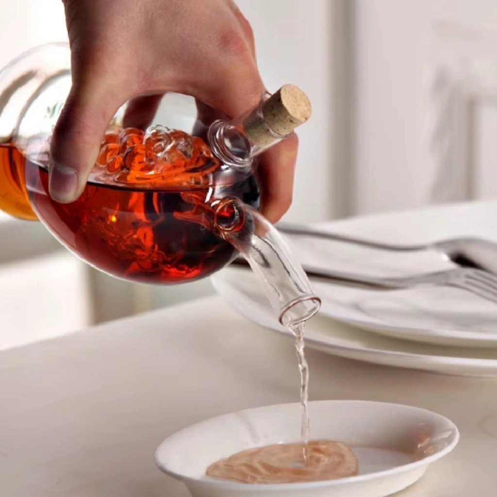 Cam 2'si 1 Arada Yağdanlık ve Sirkelik, şişe içinde iki ayrı bölme sunar. Dış hazneye sirke, içteki üzüm kabartmalı hazneye ise zeytinyağı veya farklı sıvılar eklenebilir. İç kısmındaki üzüm formu, hem dekoratif bir şıklık sunar hem de ürünü benzersiz kılar.Ürün, yüksek kaliteli borosilikat camdan üretilmiştir, dayanıklı ve sağlıklıdır. Her iki ağız kısmı mantar tıpa ile kapatılarak sızdırmazlık sağlanır.400 ml hacminde olup, zeytinyağı, sirke, nar ekşisi, soslar ve benzeri sıvılar için uygundur.Bu cam şişe, özellikle sofralarda şıklığı artırmak isteyenler için mükemmel bir tercih olup, hem kullanım kolaylığı sağlar hem de estetik görüntüsüyle fark yaratır. Paket İçeriği1 Adet Cam 2'si 1 Arada Yağdanlık ve Sirkelik