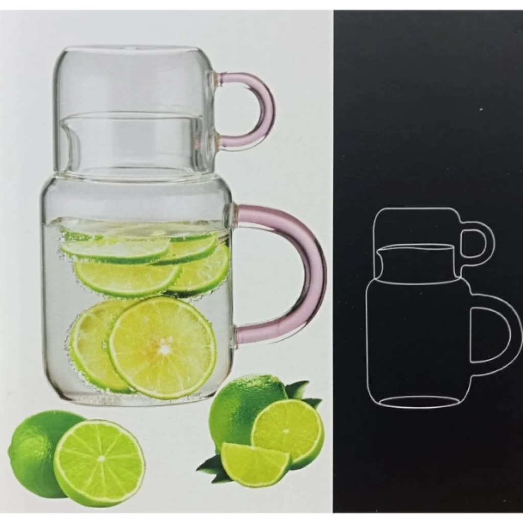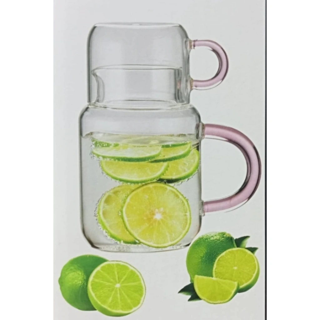 Cam Bardak Sürahi, hem bardak hem de sürahi olarak kullanılabilen çok amaçlı bir tasarıma sahiptir. Üst kısmında yer alan bardak, alt kısmı ise sürahi olarak kullanılmaktadır. Şeffaf cam gövdesi ve renkli kulp detayı ile modern bir tasarıma sahiptir. Saplı tasarımı sayesinde tutuş kolaylığı sağlar. 690 ml kapasiteye sahiptir ve su, meyve suyu, limonata gibi içecekleri servis etmek için idealdir. Mutfakta veya ofiste pratik kullanım için şık bir çözümdür.Ürün farklı renklerde mevcuttur ve stok durumuna göre karışık gönderilmektedir. Paket İçeriği1 Adet Cam Bardak Sürahi