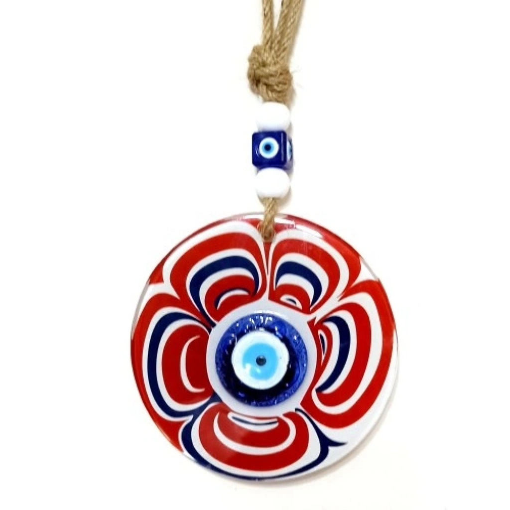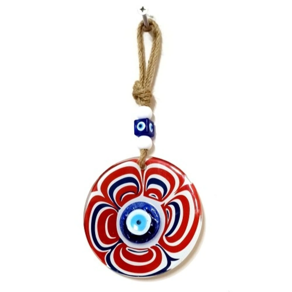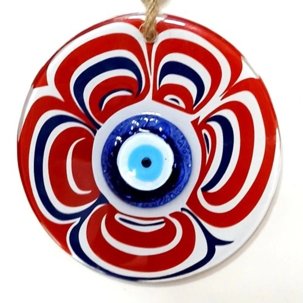 Cam Nazar Boncuklu Kırmızı Şeker Modelli Duvar SüsüCam, canlı kırmızı rengi ve şeker formundaki özgün tasarımıyla dikkat çeken bu nazar boncuklu duvar süsü, dekorasyona neşe ve enerji katan özel bir el yapımı üründür. Nazar boncuğu figürü, kötü enerjilere karşı koruyucu anlam taşırken şeker modeli tasarımıyla ürüne eğlenceli ve sıcak bir hava kazandırır.Ürünümüz füzyon cam malzeme kullanılarak özenle üretilmektedir. Füzyon cam tekniği sayesinde camın renkleri canlı ve parlak bir görünüm kazanır. El işçiliğiyle hazırlanan bu özel tasarım, her biri kendine özgü olacak şekilde üretilmektedir.Cam nazar boncuklu şeker modelli duvar süsümüz 12 santimetre çapındadır. İp dahil toplam uzunluğu 26 santimetredir. Hafif ve dengeli yapısı sayesinde duvara, kapıya, pencere önüne veya farklı dekoratif alanlara kolaylıkla asılabilir. Salon, mutfak, çocuk odası, ofis ve antre dekorasyonları için ideal olan bu cam duvar süsü; yeni ev hediyesi, nazar temalı hediyelikler ve özel günler için şık ve anlamlı bir hediyelik alternatifi sunar.