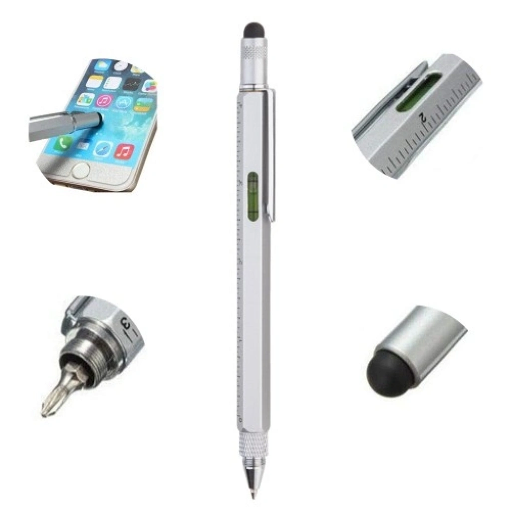 Malzeme: Metal kalem Tornavida uçları: Yıldız ve düz tornavida Mıknatıs sayesinde uçlar kolayca takılıp çıkarılabilir Su terazisi ile yapıların düzlüğünü ölçme Touchpen özelliği ile tüm dokunmatik cihazlarda kullanılabilir Cetvel ile küçük çaplı ölçümler yapılabilir Tükenmez kalem özellikli Ürün Ölçüsü Uzunluk: 15 cm Çap: 1.5 cm