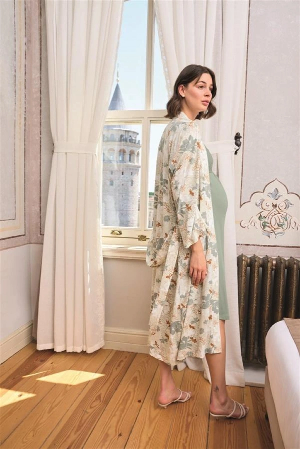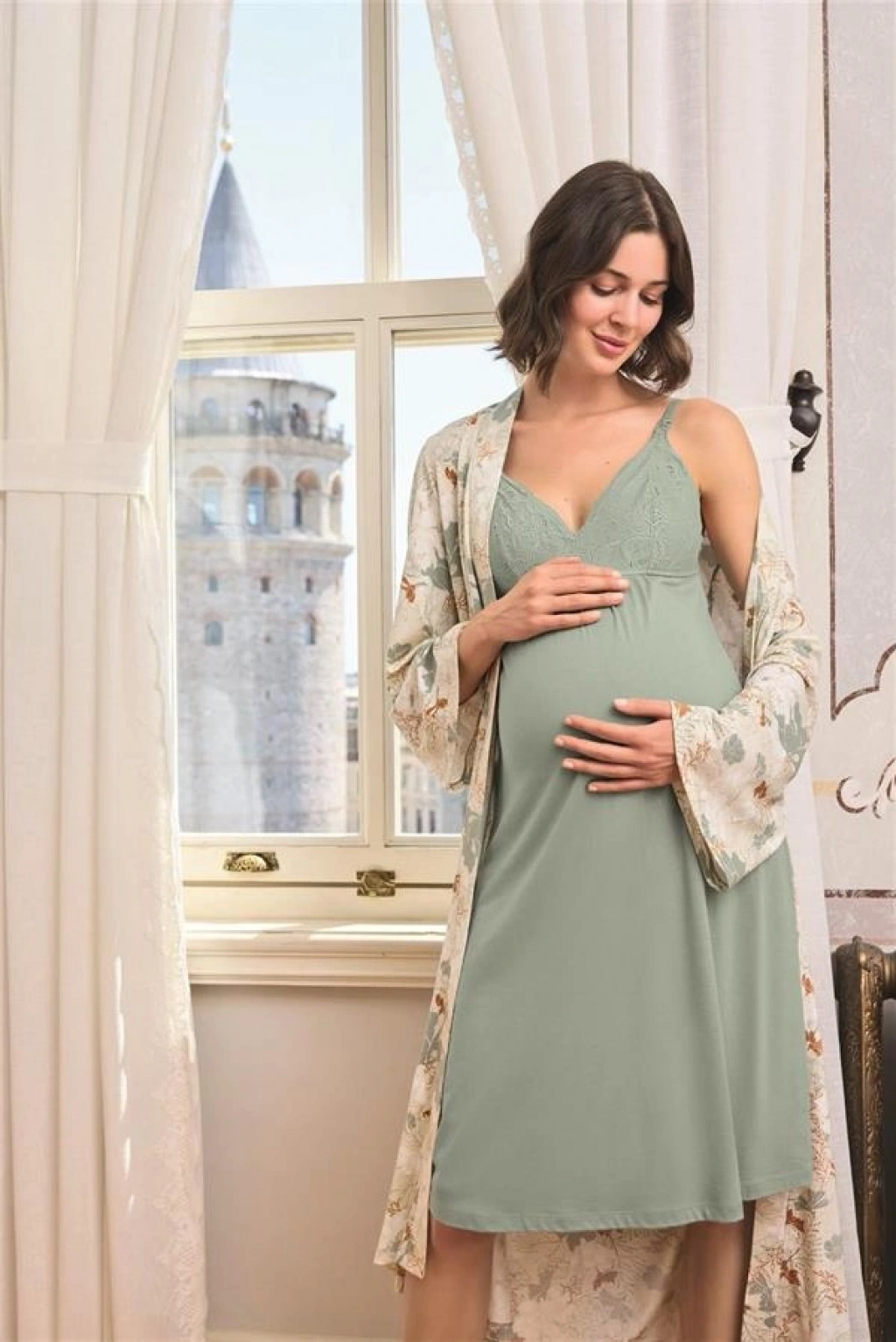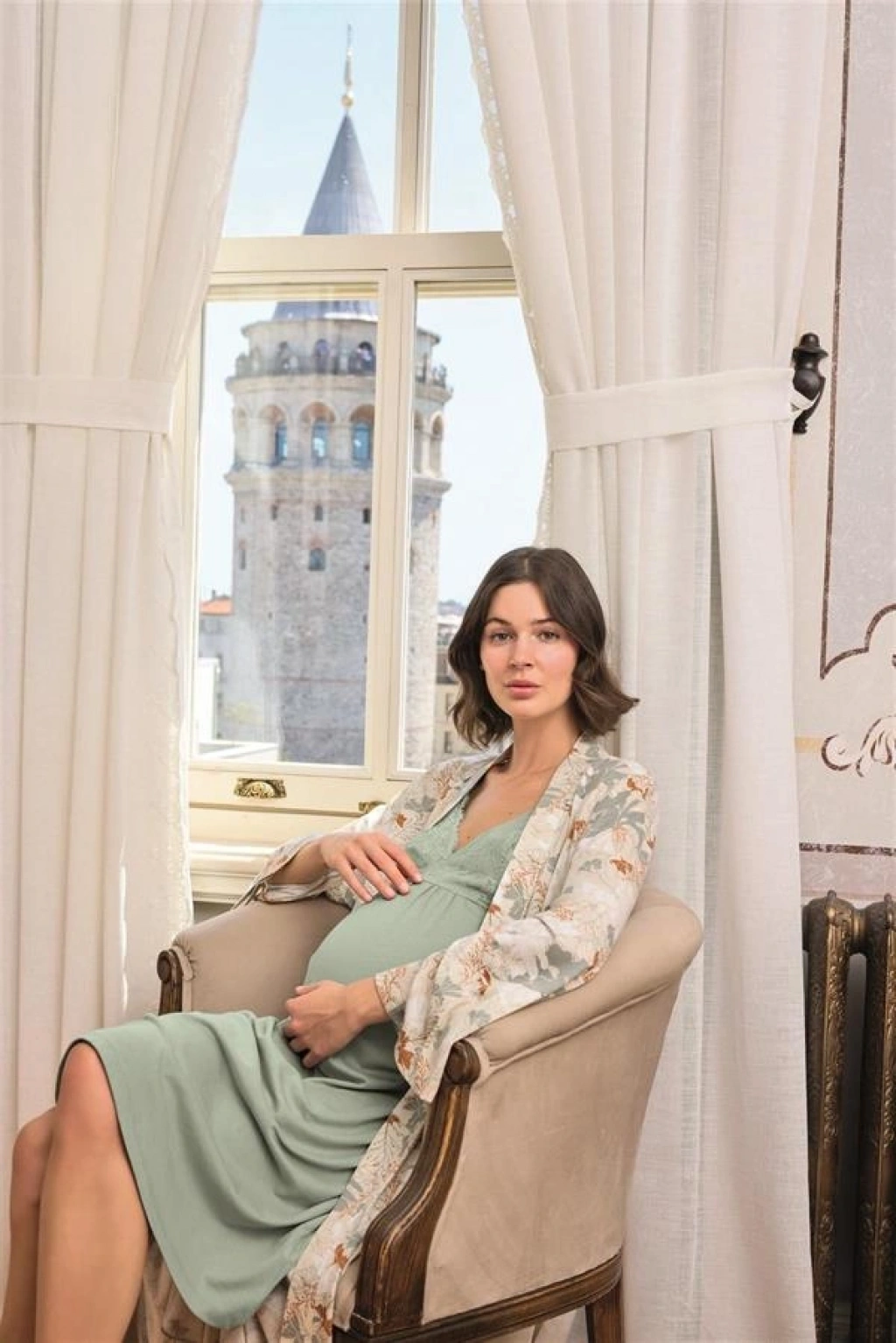 Gecelik: Yeşil renklidir, derin V yakalıdır, yakası ve göğsü dantellidir, emzirme için askılardan açılır durumdadır, ayarlanabilir lastik askılıdır, örme kumaştır.