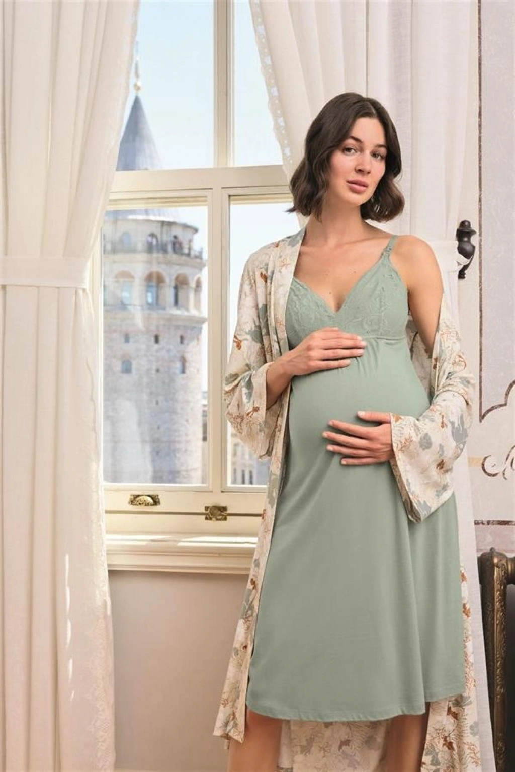 Gecelik: Yeşil renklidir, derin V yakalıdır, yakası ve göğsü dantellidir, emzirme için askılardan açılır durumdadır, ayarlanabilir lastik askılıdır, örme kumaştır.