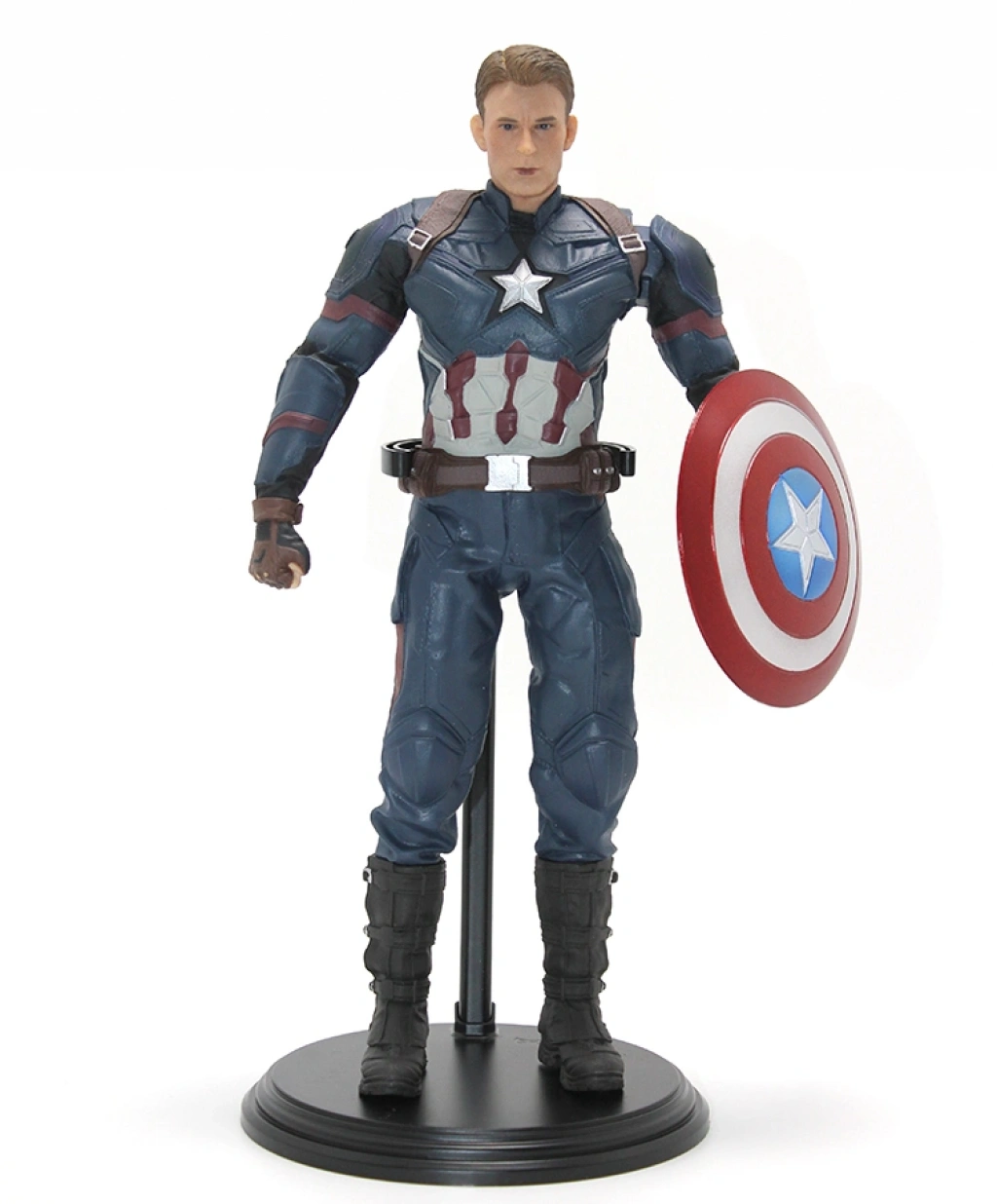 Civil War Kaptan Amerika Figürü, Marvel evreninin en ikonik sahnelerinden biri olan Captain America: Civil War filmindeki güçlü ve kararlı duruşu yansıtan özel bir tasarıma sahiptir. Figür, Kaptan Amerika’nın karakteristik kostümü, kalkan detayı ve dinamik pozuyla hem koleksiyonluk hem de dekoratif kullanım için ideal bir üründür. Dayanıklı polyester malzemeden üretilmiş olması uzun süreli kullanım avantajı sunarken, detaylı boya ve yüzey işçiliği figürün görsel kalitesini üst seviyeye taşır. Masa üstü, vitrin, raf veya koleksiyon alanlarında sergilendiğinde bulunduğu ortama güçlü bir karakter etkisi katar. Marvel hayranları, süper kahraman figür koleksiyoncuları ve tematik dekorasyon arayan kullanıcılar için öne çıkan, dikkat çekici bir figür modelidir.Paket İçeriği1 Adet Civil War Kaptan Amerika Figürü