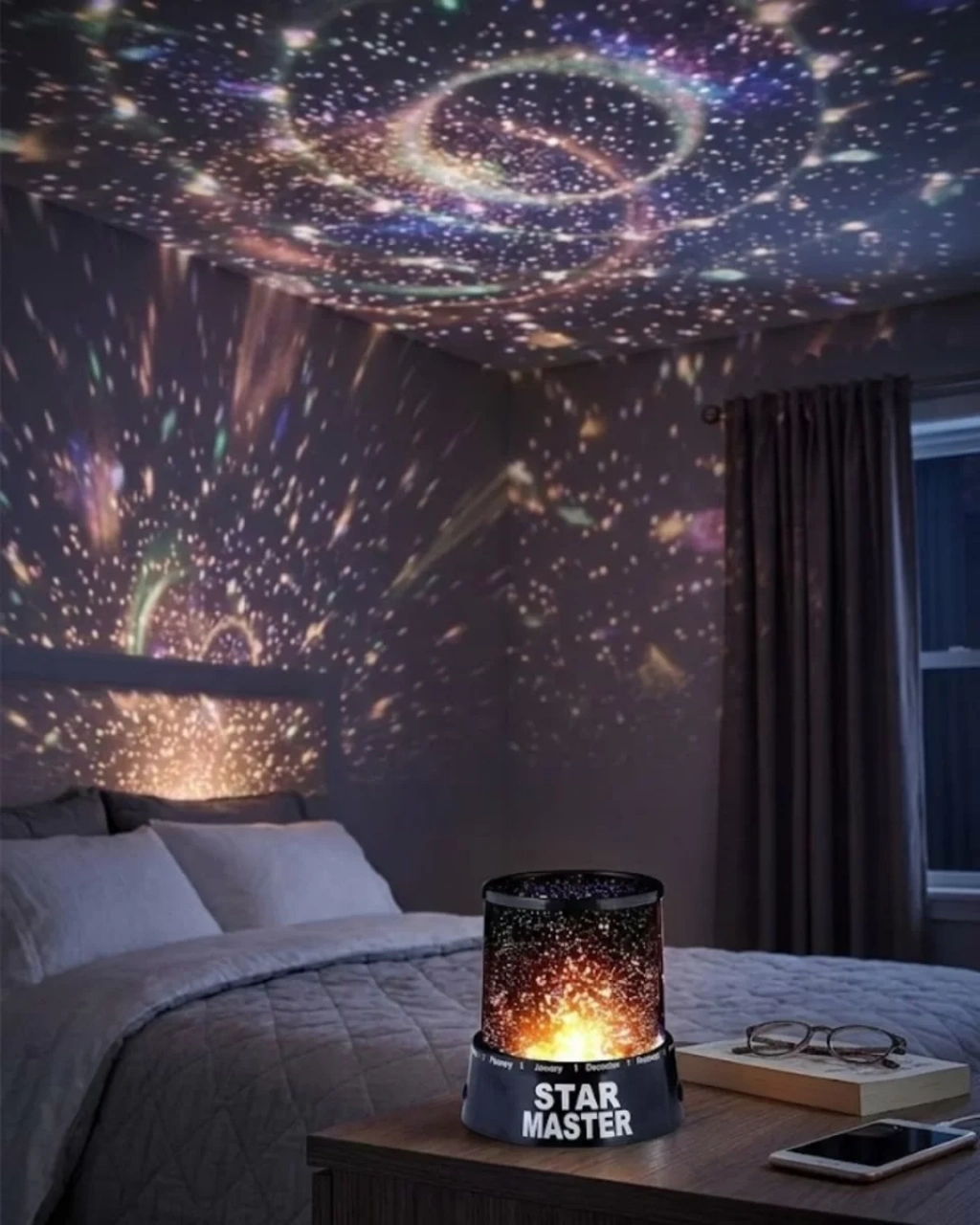 Tavana yıldız yansıtan projeksiyon gece lambası, odanızda etkileyici bir galaksi atmosferi oluşturmak için tasarlanmıştır. İç yüzeyindeki yansıtıcı yapı sayesinde LED ışıklar duvarlara ve tavana yıldız şeklinde yayılır.Işık renklerinin otomatik olarak değişmesi sayesinde görsel olarak etkileyici bir atmosfer oluşturur. Bu özellik hem dekoratif kullanım hem de gece lambası olarak kullanım için oldukça idealdir.Ürün üst kısmındaki döner kapak sayesinde ışık yoğunluğu ayarlanabilir ve yansımanın daha yoğun şekilde tavana aktarılması sağlanabilir. Bu sayede farklı ışık efektleri elde etmek mümkündür.Kompakt boyutları sayesinde kolay taşınabilir ve masa, komodin veya raf üzerinde rahatlıkla kullanılabilir. Ev dekorasyonu ve gece aydınlatması için şık bir tamamlayıcıdır.