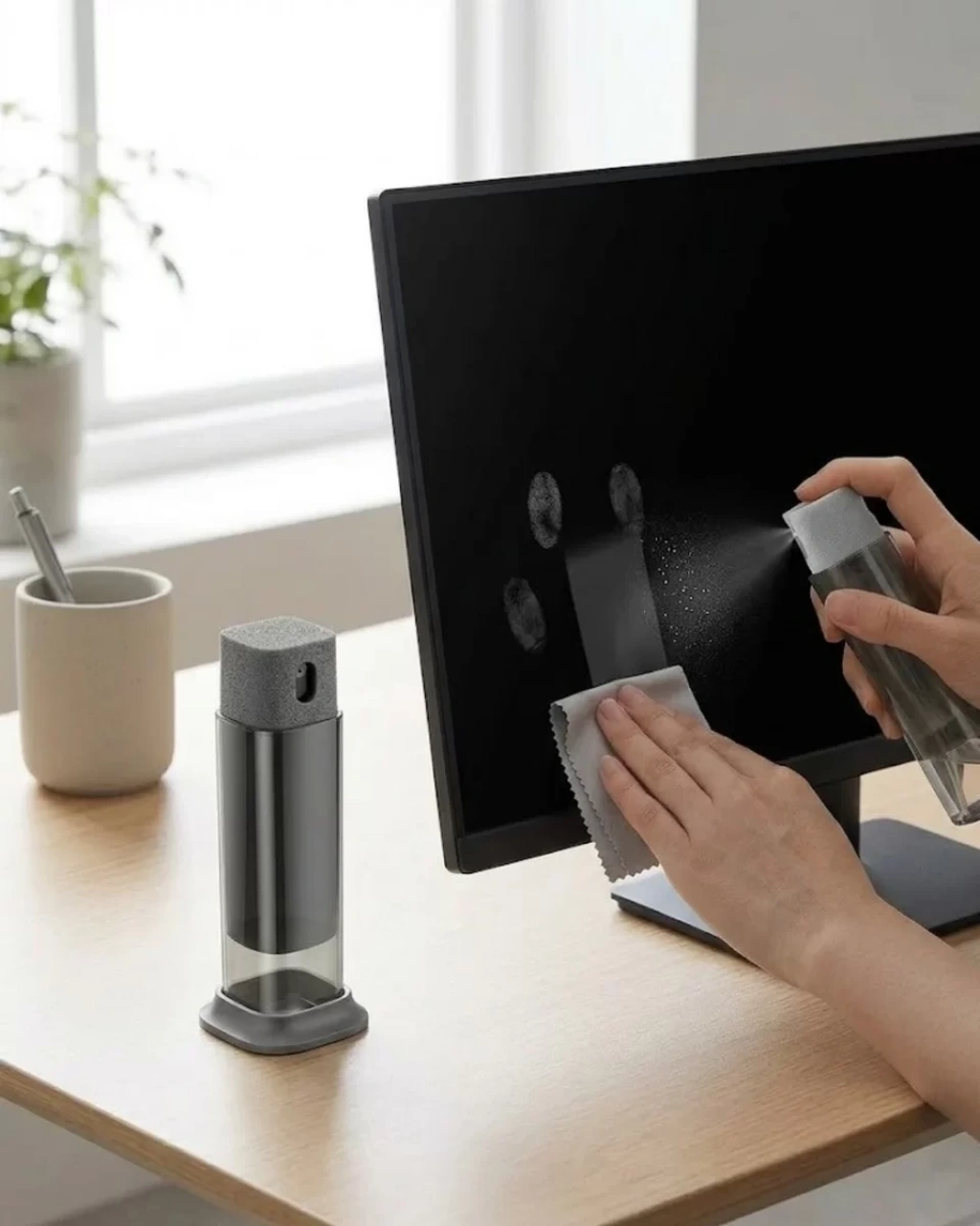Teknolojik cihazların ekranları gün içinde sürekli kullanıldığı için parmak izi, toz ve çeşitli kirlerle kolayca kaplanabilir. Bu durum ekranın görüntü kalitesini düşürebilir ve kullanım deneyimini olumsuz etkileyebilir. Ekran temizliği için kullanılan temizlik sıvılarının pratik şekilde uygulanabilmesi için tasarlanan ekran temizleme sprey şişesi, günlük kullanımda oldukça pratik bir çözüm sunar.Bu ürün yalnızca boş sprey şişe olarak tasarlanmıştır ve kullanıcıların kendi temizlik solüsyonlarını doldurarak kullanmasına imkan tanır. Sprey mekanizması sayesinde temizlik sıvısı yüzeye eşit şekilde püskürtülür ve ekran temizliği daha etkili hale gelir.Kompakt ve taşınabilir tasarımı sayesinde bu sprey şişesi birçok farklı ortamda rahatlıkla kullanılabilir. Evde, iş yerinde, okulda veya seyahat sırasında kolayca taşınabilir. Küçük boyutu sayesinde çantada veya masa çekmecesinde fazla yer kaplamaz.Şişe farklı temizlik sıvıları ile kullanılabilecek şekilde tasarlanmıştır. Telefon ekranları, tablet ekranları, bilgisayar monitörleri, televizyon panelleri ve araç multimedya ekranları gibi birçok farklı yüzeyin temizliğinde kullanılabilir.Ergonomik tasarımı sayesinde kullanım sırasında rahat bir tutuş sağlar. Sprey mekanizması sıvının kontrollü şekilde püskürtülmesine yardımcı olur ve temizlik işlemini kolaylaştırır.Dayanıklı malzemeden üretilmiş olan bu sprey şişesi uzun süreli kullanım için uygundur. Günlük cihaz bakımını kolaylaştıran pratik bir temizlik çözümü sunar.
