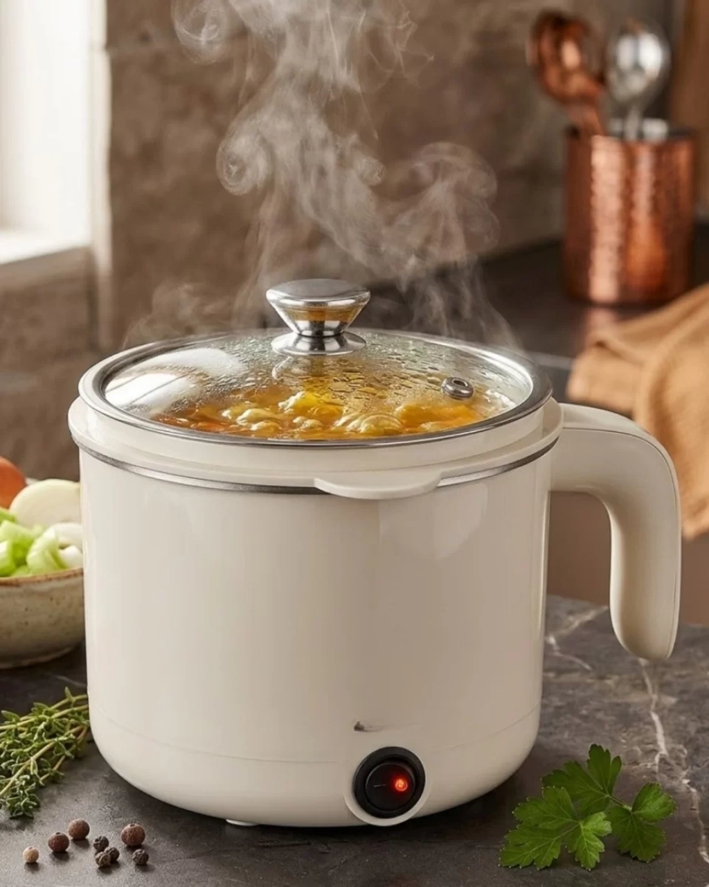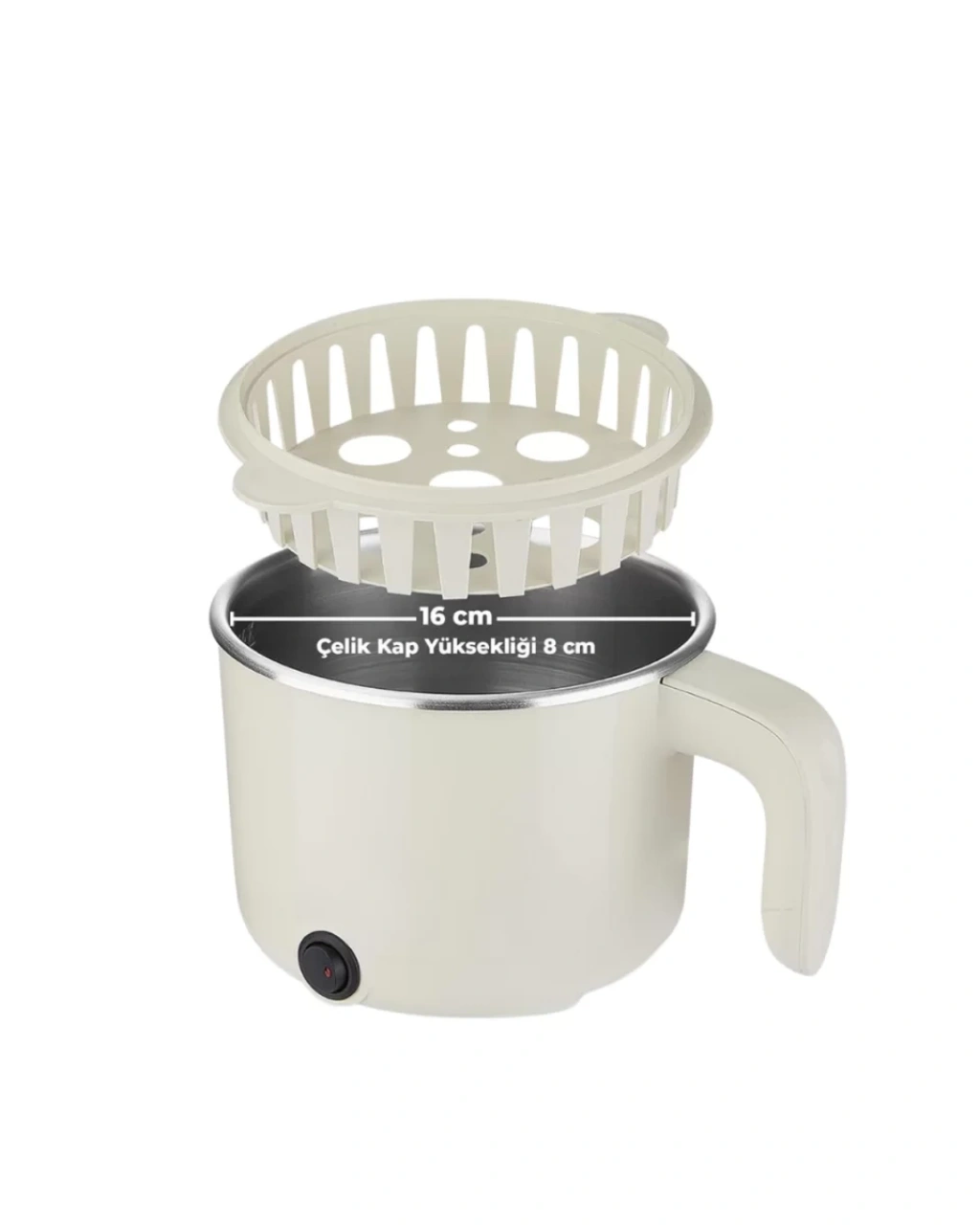 Çok amaçlı elektrikli pişirici, mutfakta pratik ve hızlı yemek hazırlamak isteyen kullanıcılar için tasarlanmış kullanışlı bir mutfak cihazıdır. Kompakt tasarımı sayesinde mutfakta fazla yer kaplamaz ve günlük yemek hazırlıklarında büyük kolaylık sağlar. Özellikle küçük mutfaklar, öğrenci evleri, ofis kullanımı veya pratik yemek hazırlamak isteyen kullanıcılar için oldukça ideal bir üründür.1 litre kapasiteye sahip olan bu elektrikli pişirici, tek seferde yeterli miktarda yemek hazırlamanıza imkan tanır. Çorba, pilav, makarna, sebze yemekleri ve yumurta haşlama gibi birçok farklı yemek türünü kolaylıkla hazırlayabilirsiniz. Çok amaçlı kullanım özelliği sayesinde tek bir cihaz ile farklı yemekler hazırlamak mümkündür.Ürün ile birlikte sunulan buharda pişirme tepsisi sayesinde sebzeleri sağlıklı bir şekilde buharda pişirebilirsiniz. Buharda pişirme yöntemi, yiyeceklerin besin değerlerini koruyarak daha sağlıklı yemekler hazırlamanıza yardımcı olur. Bu özellik özellikle sağlıklı beslenmeye önem veren kullanıcılar için oldukça avantajlıdır.Paslanmaz gizli rezistans sistemi sayesinde ısı eşit şekilde dağıtılır ve yemekler dengeli şekilde pişer. Gizli rezistans tasarımı aynı zamanda cihazın temizliğini de kolaylaştırır. Geniş ağız tasarımı sayesinde iç hazneye kolayca ulaşabilir ve kullanım sonrasında rahat bir şekilde temizleyebilirsiniz.Temperli cam kapak sayesinde yemeklerin pişme sürecini rahatlıkla takip edebilirsiniz. Dayanıklı cam kapak yapısı hem güvenli kullanım sağlar hem de uzun ömürlüdür.Işıklı açma kapama düğmesi sayesinde cihazı kolay şekilde kontrol edebilirsiniz. Ayrıca aşırı ısınma ve susuz çalışmayı önleyen emniyet sistemi sayesinde güvenli bir kullanım sunar.